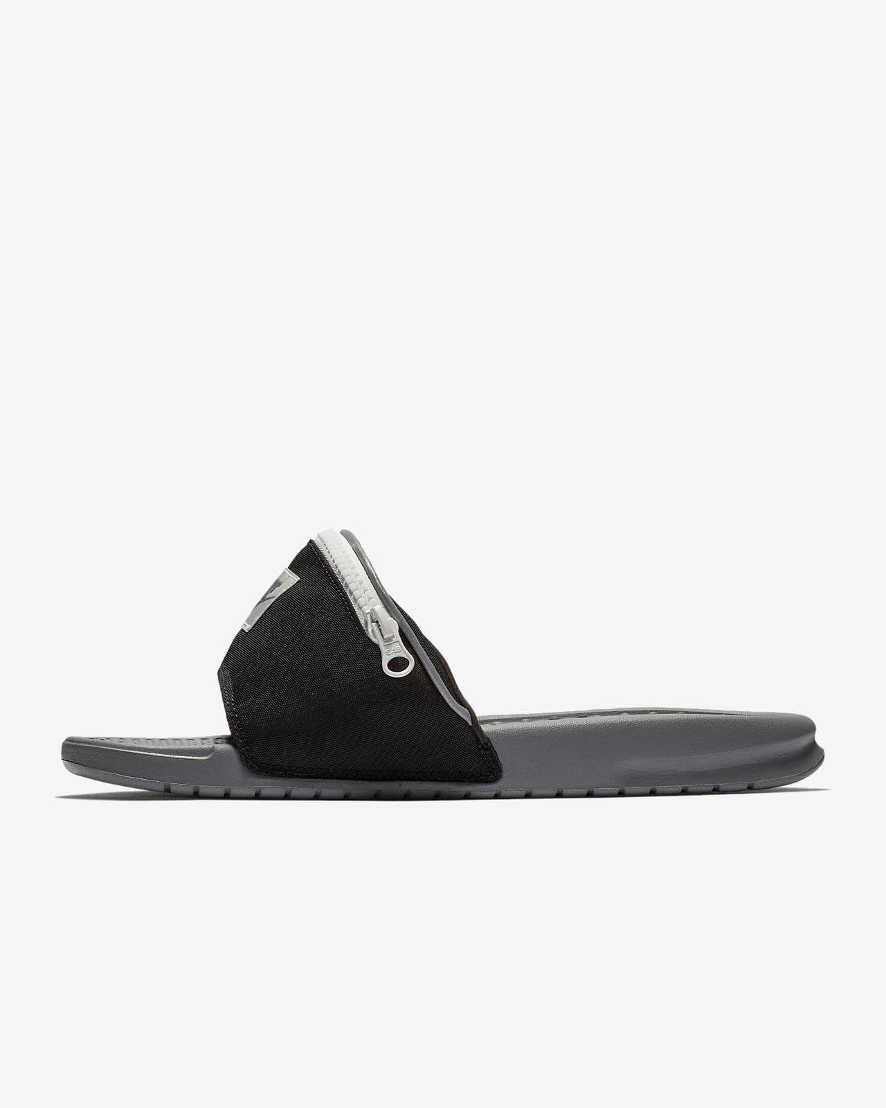 Det är en självklarhet att inte riskera att basha sina snyggaste sneakers på en festival. Orkar du inte bära med dig en väska, men är bra på att packa endast det absolut nödvändigaste? I så fall får du kanske plats med dina nödvändigheter i dessa Nike-slides med inbyggd fanny pack. Tappa inte tofflan i moshpiten bara…
