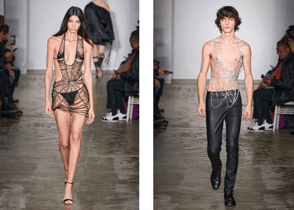 Ludovic de Saint Sernin är en Paris-baserad designer som fått mycket uppmärksamhet det senaste året. Efter att ha varit intern för de stora lyxmodehusen Dior, Saint Laurent och Balmain valde de Saint Sernin 2017 att grunda sitt egna varumärke. Ett år efter att han grundat varumärket nomineras han för den prestigefyllda modetävlingen LVMH prize. Hans verk beskrivs ofta som “´90s supermodel era to men’s clothing”. Tack vare detta har hans namn kommit att uppmärksammas för sin förmåga att utmana könsnormer och andra normer inom framförallt menswear-världen. Plagg inspirerade av 70- och 80-talet framkommer ofta i de Saint Sernins kollektioner. Han skapar sexiga plagg, ofta i croppade tanktops i läder och lace-up byxor, även de i läder. De Saint Sernin experimenterar också ofta med rhinestones för att skapa olika cuts, former och silhuetter. Kollektionernas utmanande sida kompletteras ofta med stilren, lyxig tailoring.