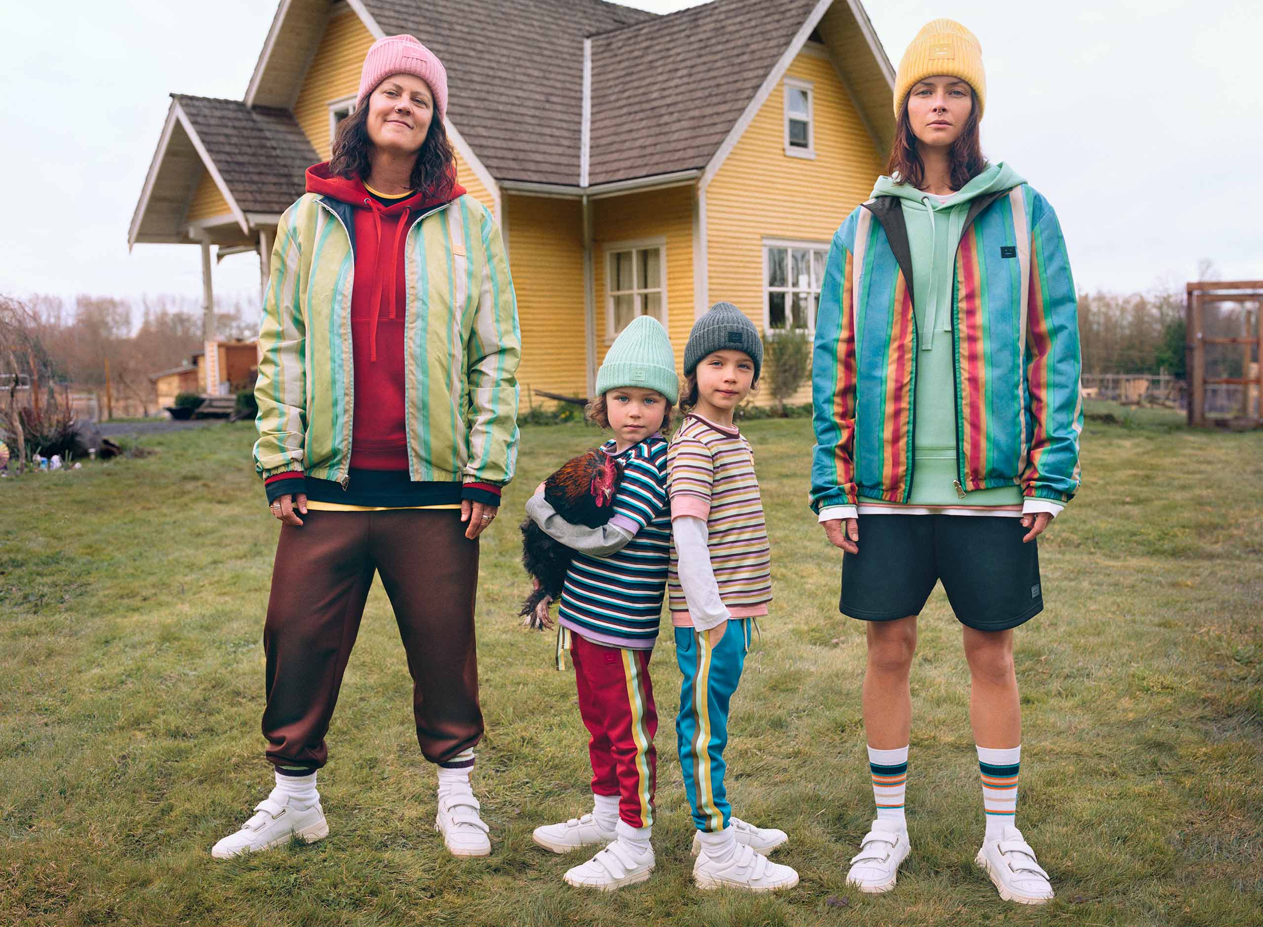 Acne Studios presenterar en ny familjevänlig-kollektion som hyllar den moderna familjen. Kollektionen frontas av supermodellen Tasha Tilberg och hennes fru Laura Wilson samt deras tvillingbarn Bowie och Gray 6 år.