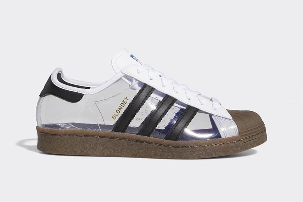 Blondey McCoy och adidas har samarbetat vid ett flertal tillfällen tidigare. Näst i raden av samarbete är en release av en adidas x Blondey McCoy Superstar sneaker. Den uppdaterade Superstar modellen kommer i en genomskinlig ovandel gjort i ett plastmaterial som heter polyuretan. Detta kombineras med detaljer i läder och en gummisula. Skorna rundas av med texten ”Blondey” printat på skorna där vi vanligtvis brukar se texten ”Superstar” på den klassiska modellen.
