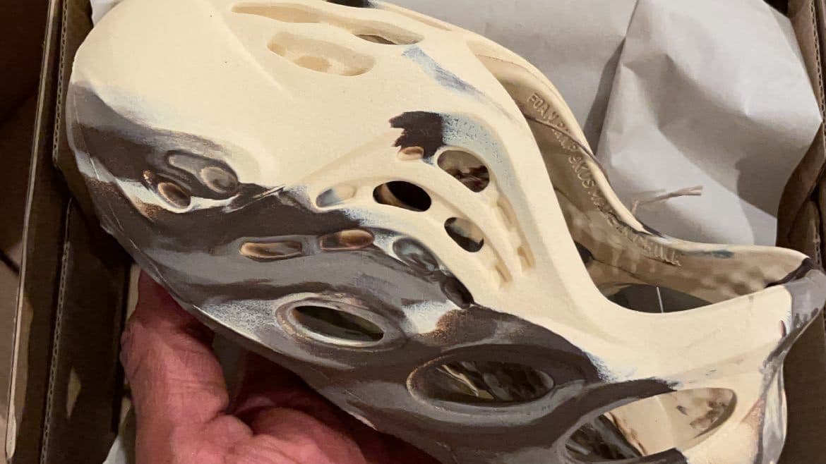 De första bilderna på tofflorna har dykt upp via profilen @chicagodonc. De kommer i två olika nyanser av grått och beiget. Designen efterliknar marmormönster. MX i namnet står för att skornas två nyanser tas fram slumpmässigt, och varje par kommer vara unikt.