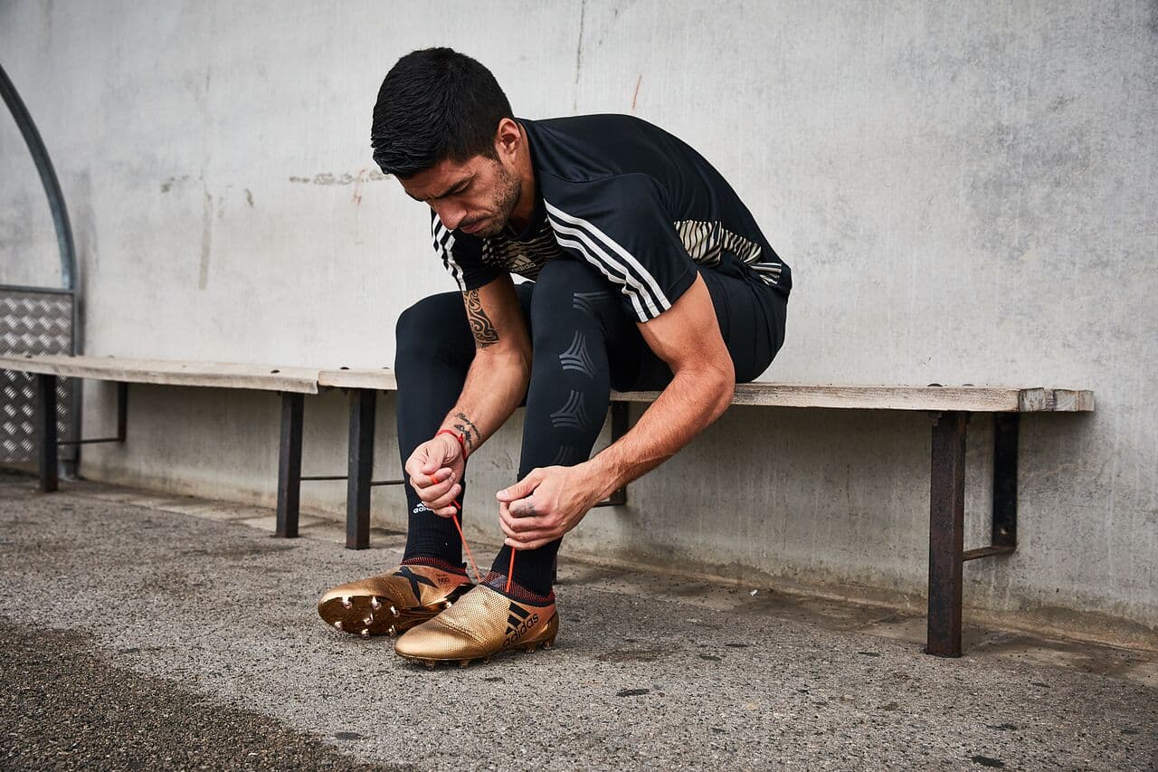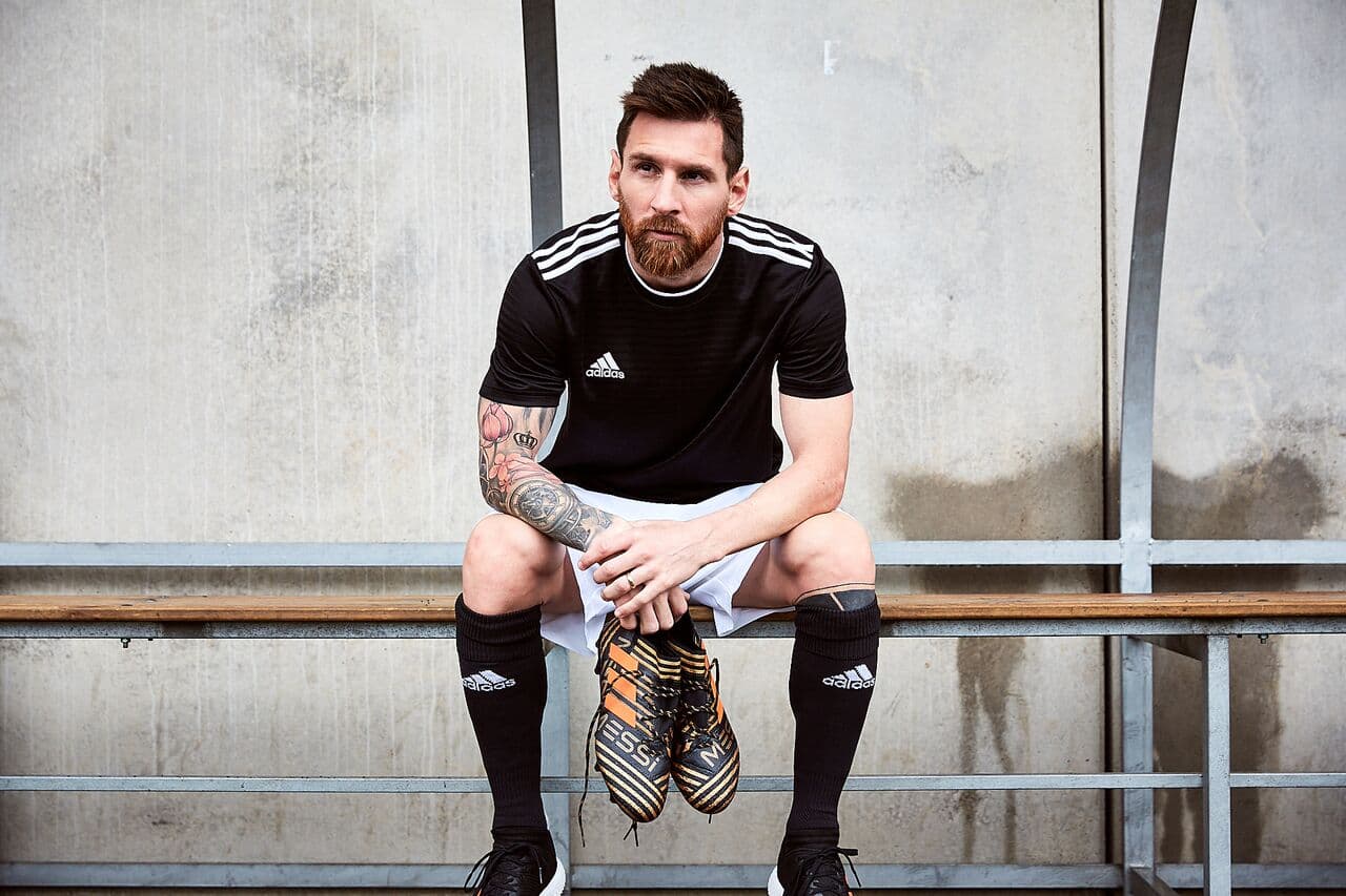 Den nya X17+ PureSpeed kommer i en ovandel i svart och rött och i ett skal med en mer metallisk guldaktig färg. Även NEMEZIZ kommer i guldaktiga detaljer. NEMEZIZ 17 kommer i en yttersula i guldfärg med svarta ränder och en röd överdel. NEMEZIZ Messi som är Messis signatursko har en överdel av guldfärgade ränder samt ränder på sidan i rött. adidas klassiska Copa 18 fotbollssko kommer i en vit färg med multifärgad Primeknit med guldiga detaljer.