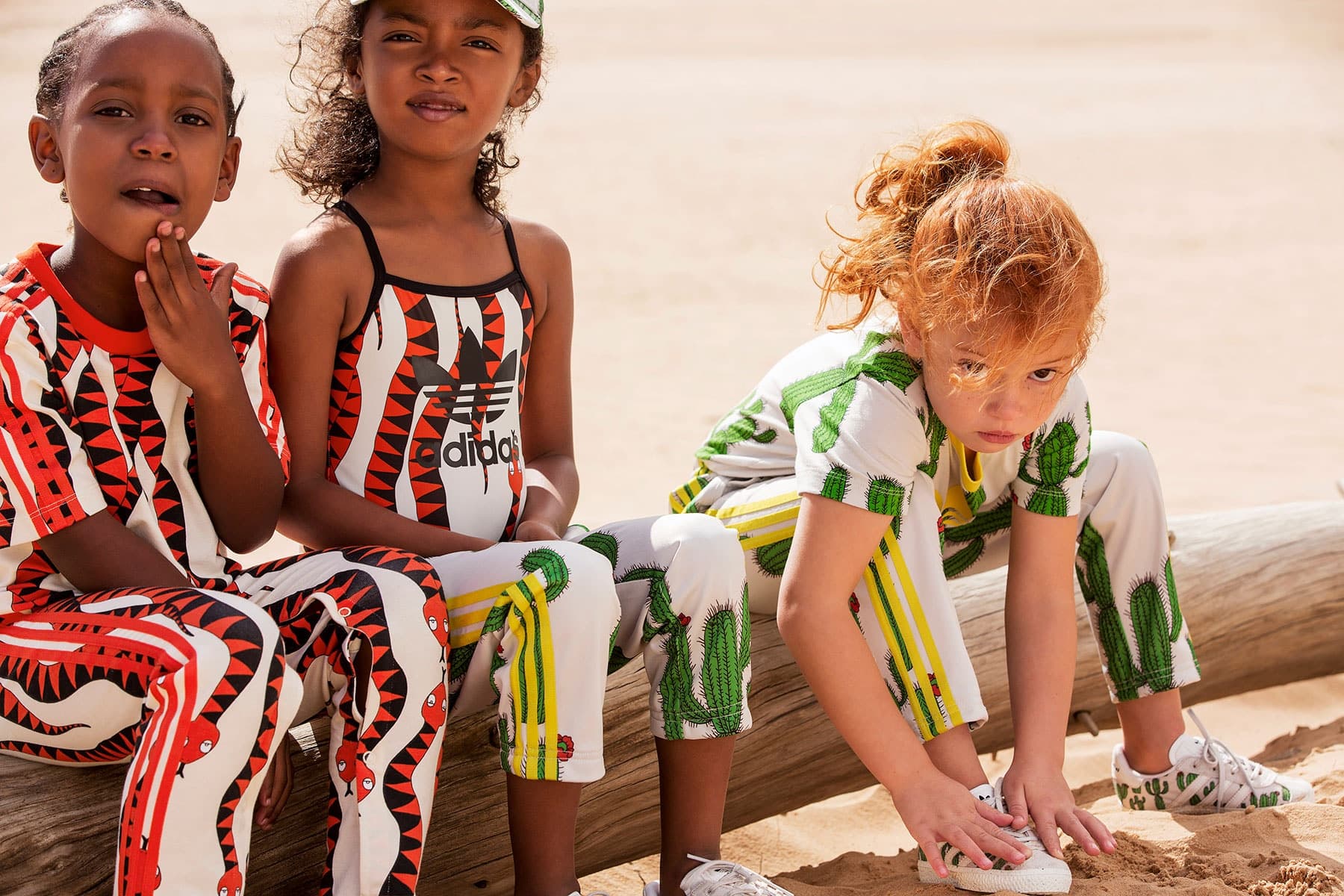 Den nya kollektionen kommer i två nya grafiskamönster – på Kaktusar och Ormar. Kollektionen består av adidas tracksuit, jumpsuit, t-shirts, Gazelle sneakers, baddräkt och kepsar. Storlekarna går i 3 månader upp till 6 år.