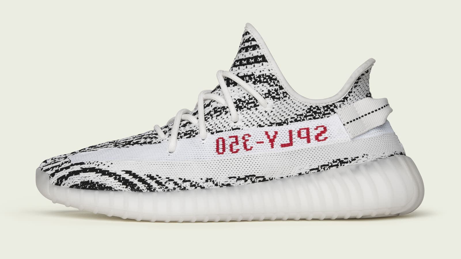 adidas YEEZY BOOST släpptes för första gången 2017. Den klassiska silhuetten har en överdel tillverkad i klassisk Primeknit. Namnet ”Zebra” kommer från att överdelen går i vitt med svarta ränder – likt djuret. Längs med sidan syns röda texten ”SPLY-350”.