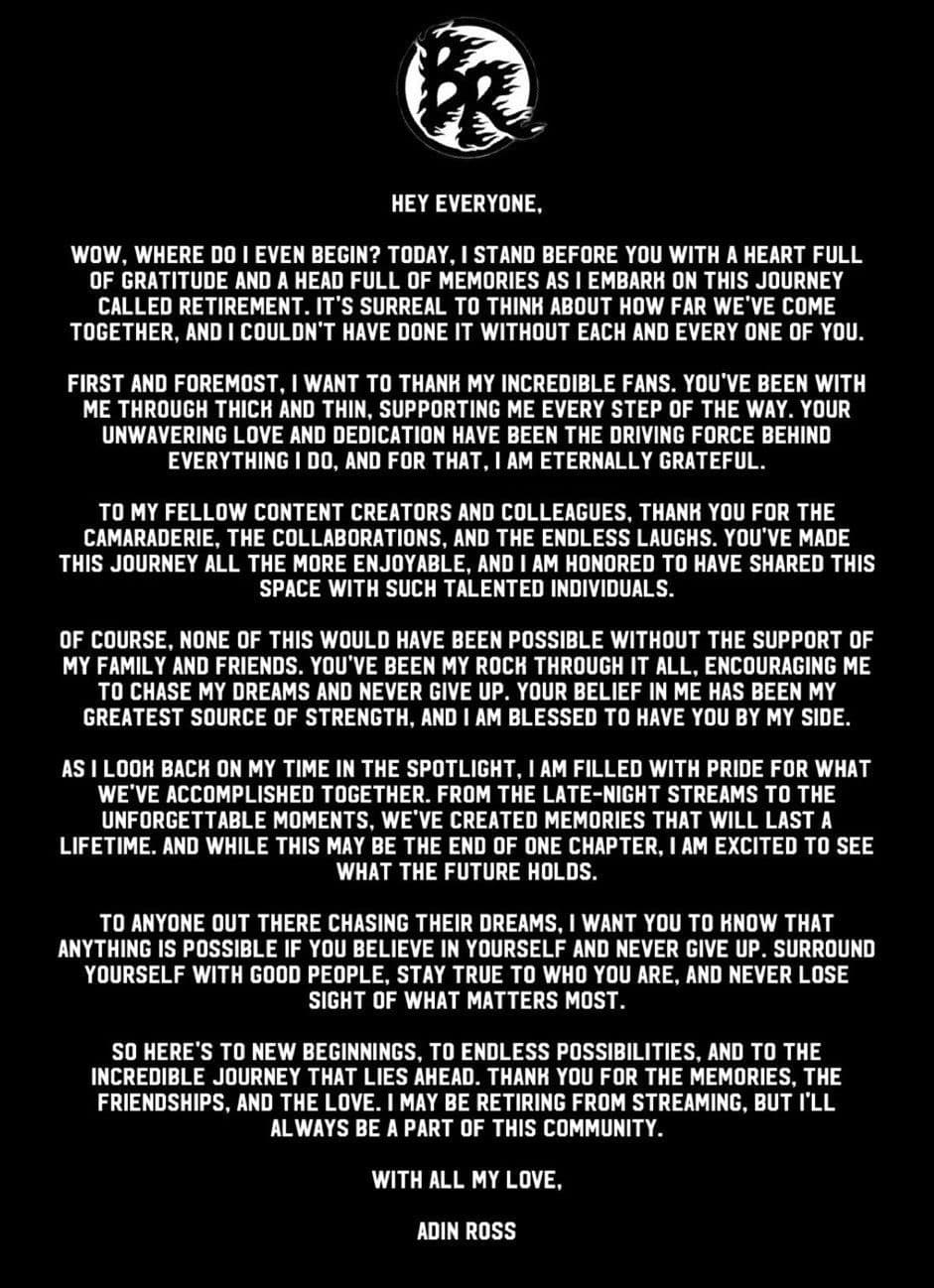 Nu verkar det som att Ross själv känt att det blivit för mycket, då han i en nu borttagen tweet meddelar att han lämnar streamingvärlden.