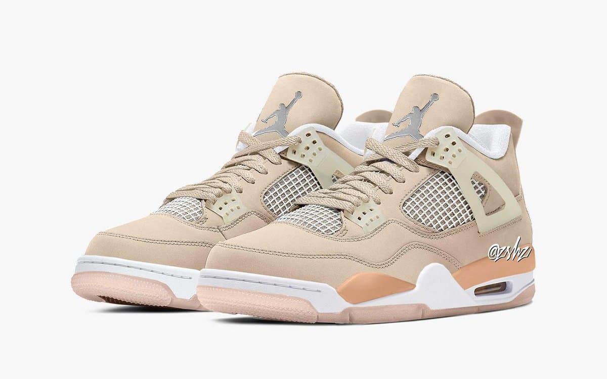 Info om kommande Air Jordan 4 ”Shimmer” har setts hos leaks som @zSneakerheadz. Skon går i beiga, och nästintill rosa och persikofärgade nyanser – något varmare än OFF-WHITE’s variant. Den rosatonade yttersulan tycks vara halvtransparent – och mellansulan går i vitt. Metalliska detaljer i silver syns på den klassiska Jumpman-silhuetten på skons tunga.