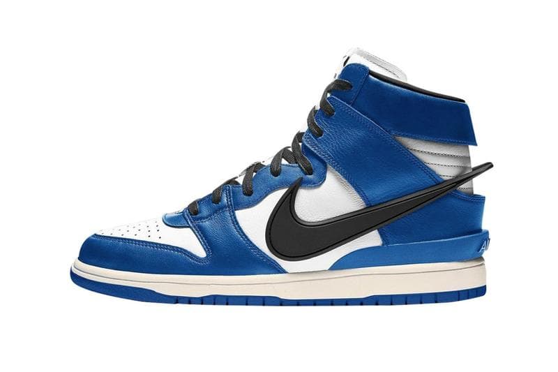 Nyligen visades färgställningen ”Chicago” upp av AMBUSH samarbete med Nike på silhuetten Dunk High. Nu syns ännu en variant i den blåa ”Deep Royal Blue” som ryktas släppas under våren/sommaren. Skon följer upp de tidigare svart/vita och rosa färgställningarna.