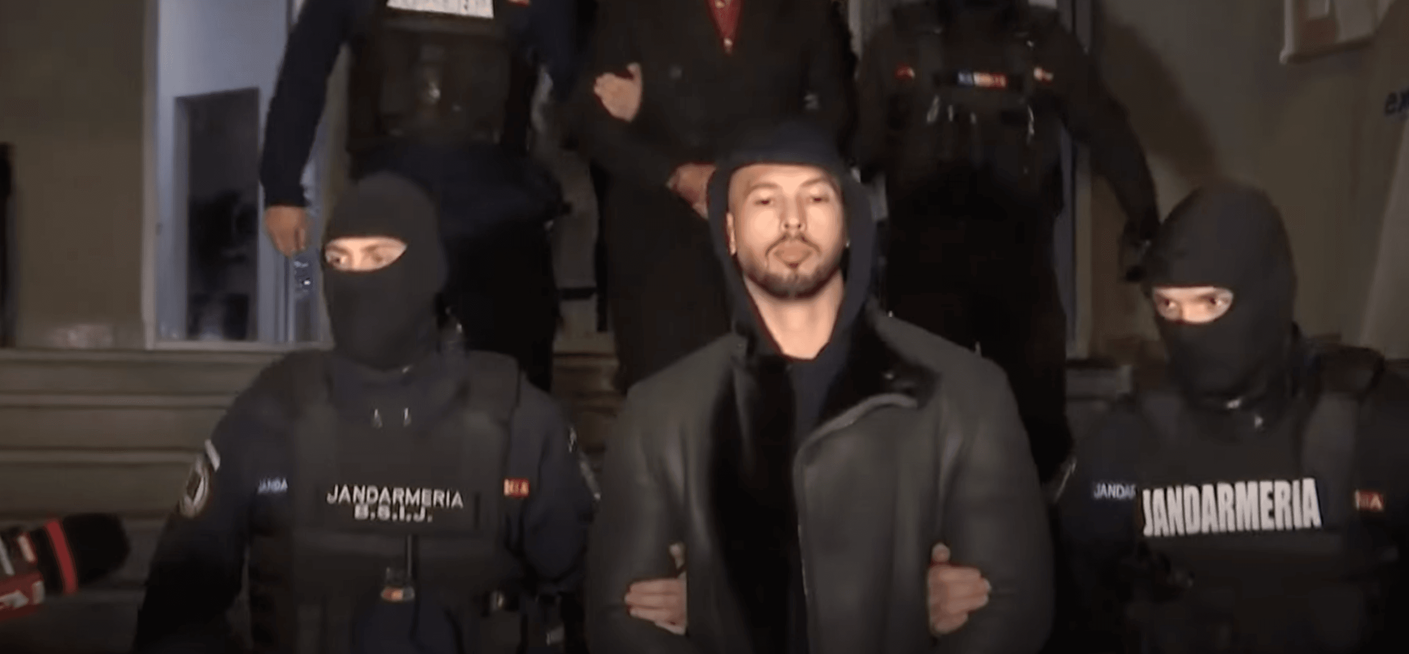 Bilden är från en tidigare arrest 2022. Foto: ”Andrew Tate Arrested in Romania” via Youtube / Skärmavbild