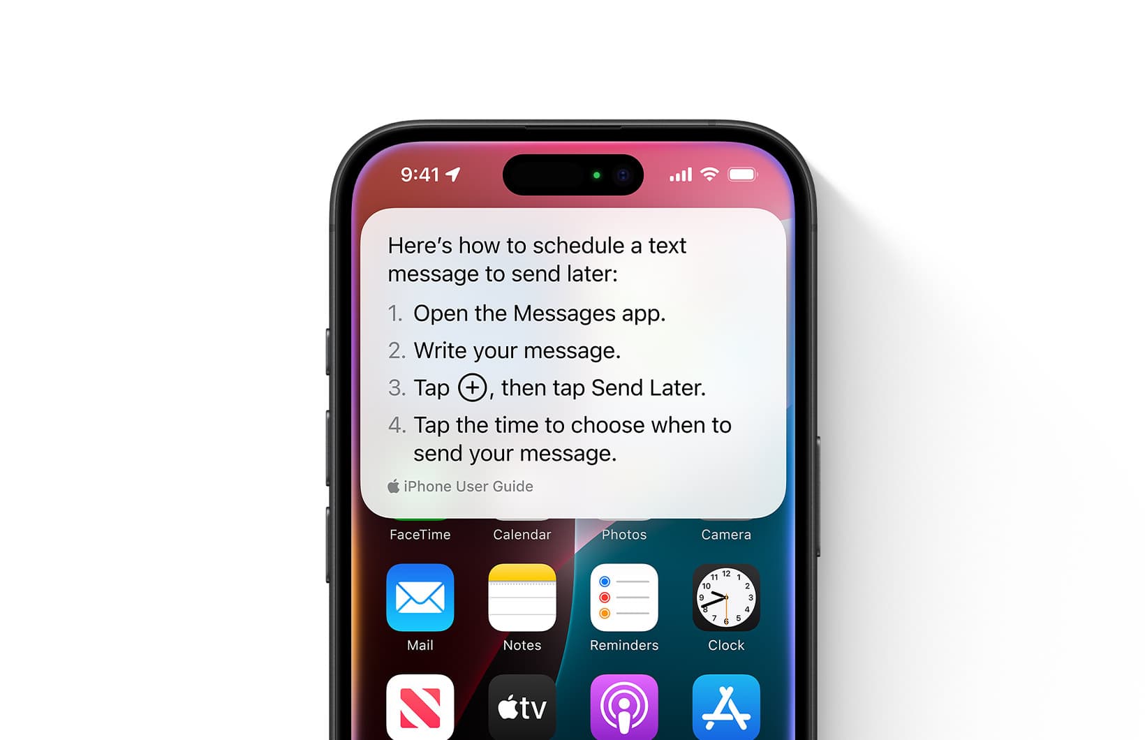 Siri förstår och kommer ihåg även när en fråga hänger ihop med en tidigare fråga och kan växla sömlöst mellan tal och text. Med en bredare förståelse för Apple-enheternas funktioner kan Siri svara på tusentals frågor om inställningar och funktioner.