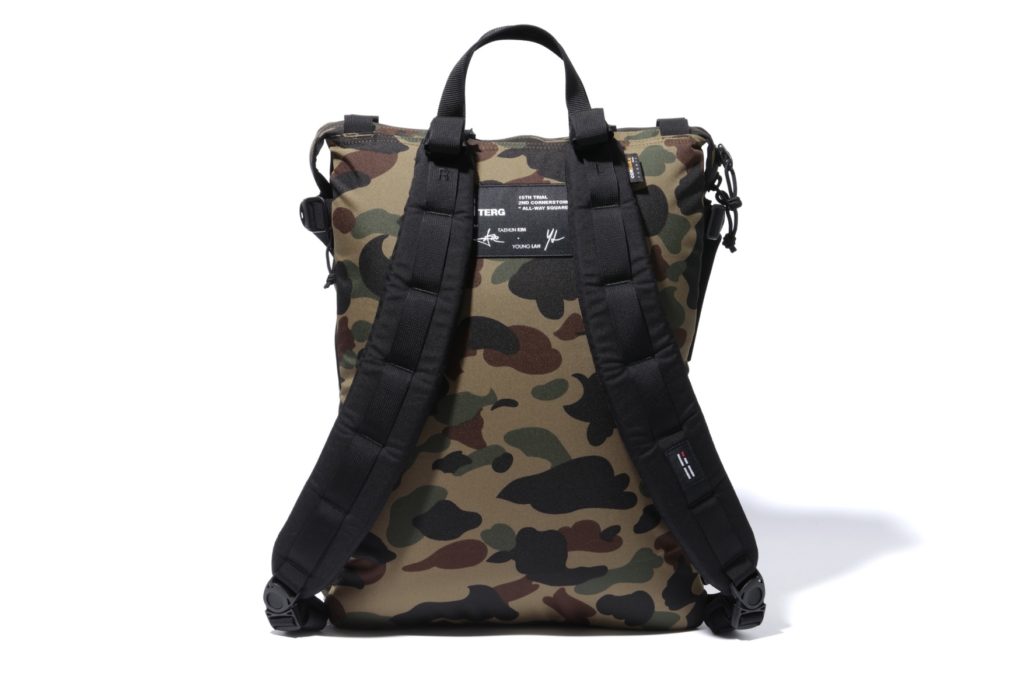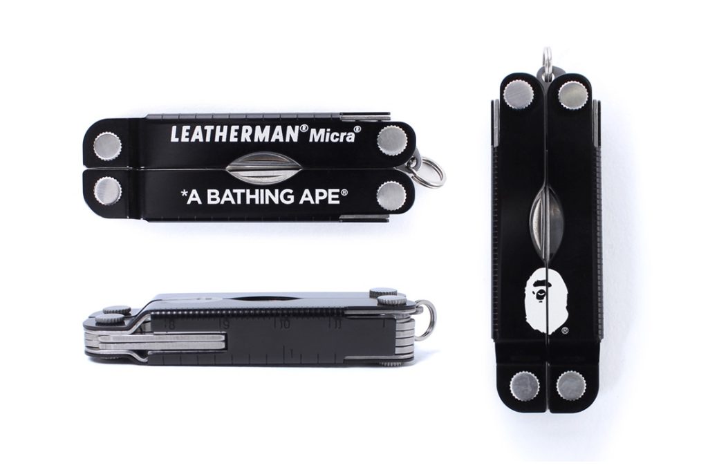 Samlingen innehåller också tillbehör som skapas i samarbete med Nalgene, Klean Kanteen, Chaco och Leatherman. Alla de nya föremålen kommer i BAPEs ikoniska camo-mönster eller med signatur loggor som APE Head.