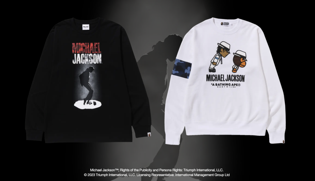 ”Michael Jacksons arkiv, som fortsätter att fascinera många fans, har arrangerats med BAPE®s unika idéer”, skriver märket på sin hemsida (översatt från japanska).