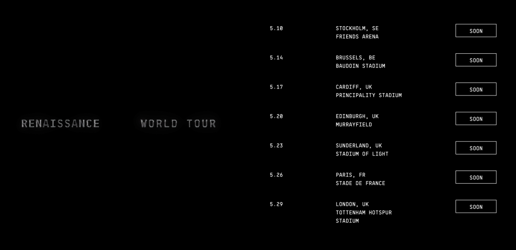 Sparkar igång europadelen av världsturnén för "RENAISSANCE" på Friends Arena