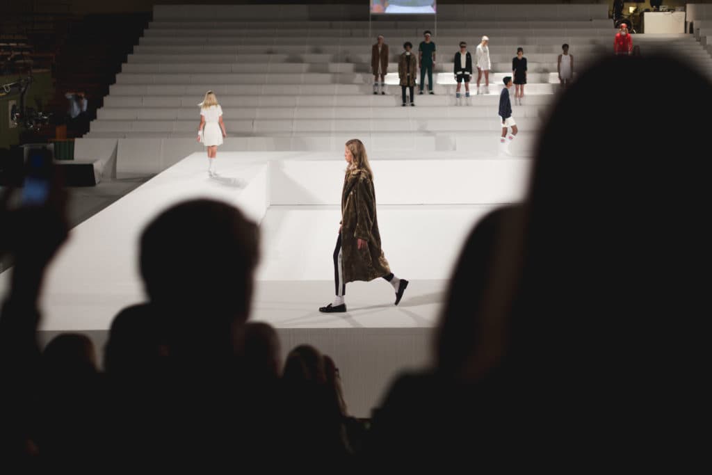 Modellerna var uppradade på två olika sidor av läktaren på motsatt sida ifrån där press satt och splittade så att ena sidan var mer en visning av ready to wear-prylar medan den andra sidan var lite mer klassiska ”runway looks” som är till för att vara mer iögonfallande och skapa reaktion på ett annat sätt än vad RTW-kollektionen gör. Jag kände dock på rak arm att jag absolut skulle bära många av de plagg som förmodligen inte kommer att produceras utan bara skapades för showen. En av modellerna hade på sig en riktigt snygg regnanorak med stora slits så att den mer hängde som en accessoar än vad den fyllde en faktiskt jack-funktion, vilket jag kände verkligen wow. Den var snyggt skuren och gav en riktigt laid back-look som jag verkligen kan komma att uppskatta.