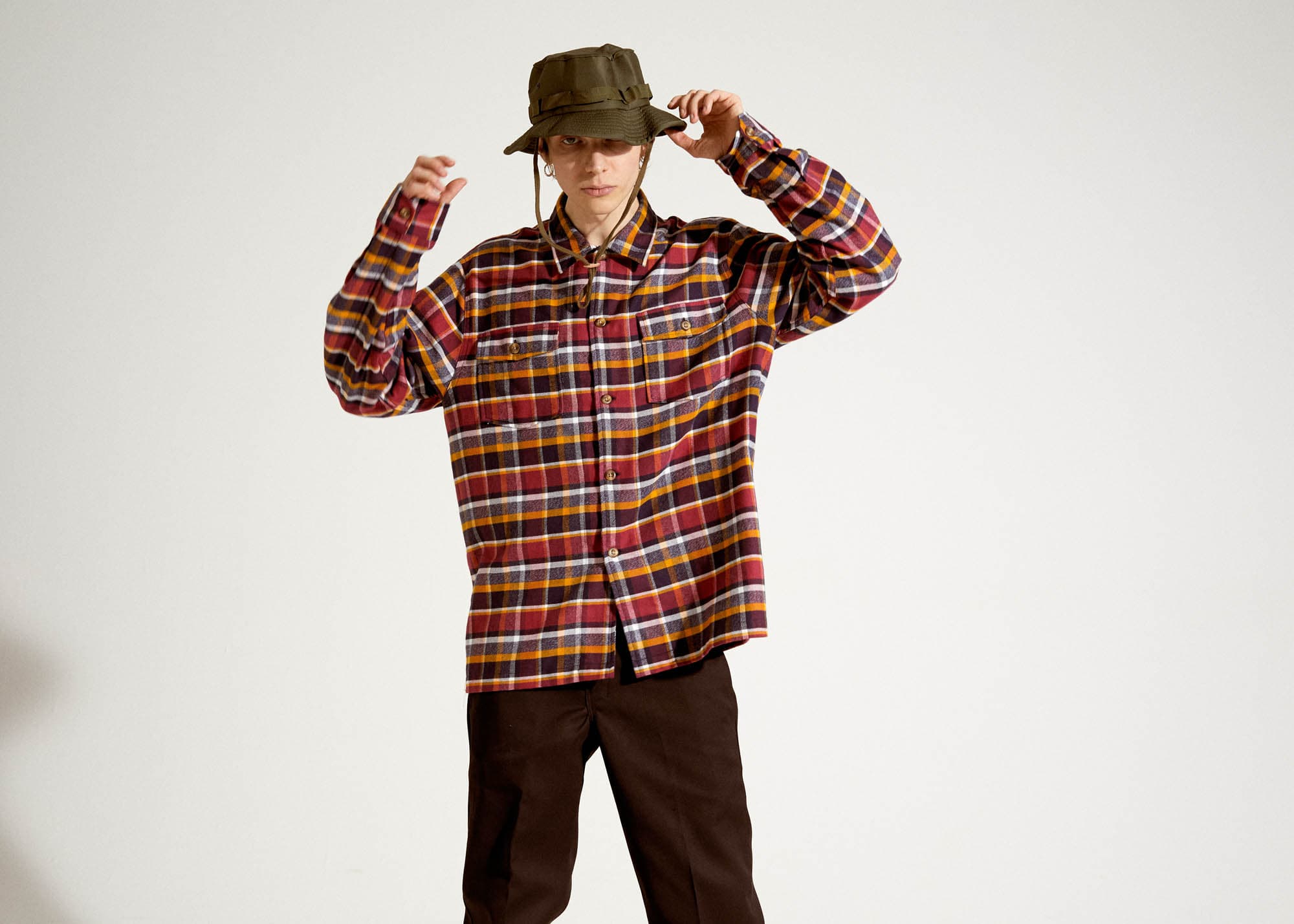 Kollektionen där vi b.la. ser den populära Caliroots-palmen består av av hoodies, tröjor, t-shirt men höjdpunkterna är de breda chinos som kommer i en matchande skjorta i militärgrön färg. Varje plagg är designat något oversized, för en enkel och avslappnad look.