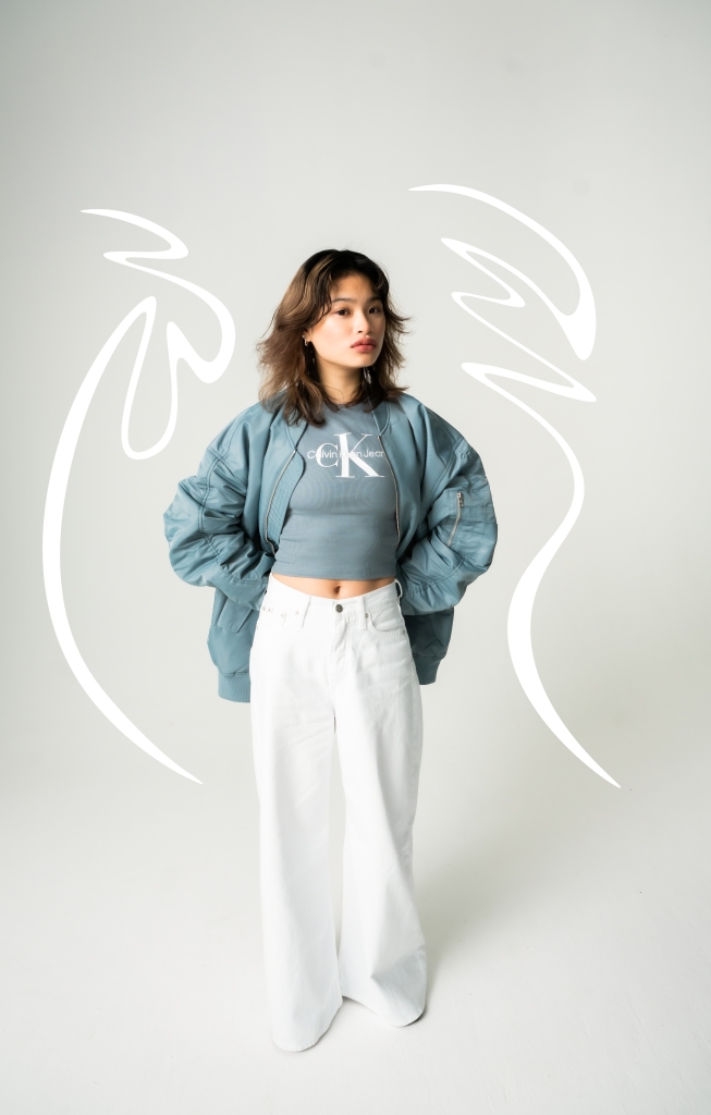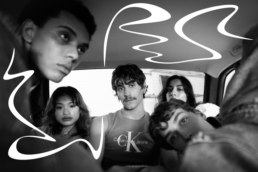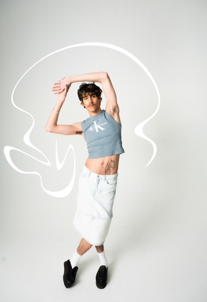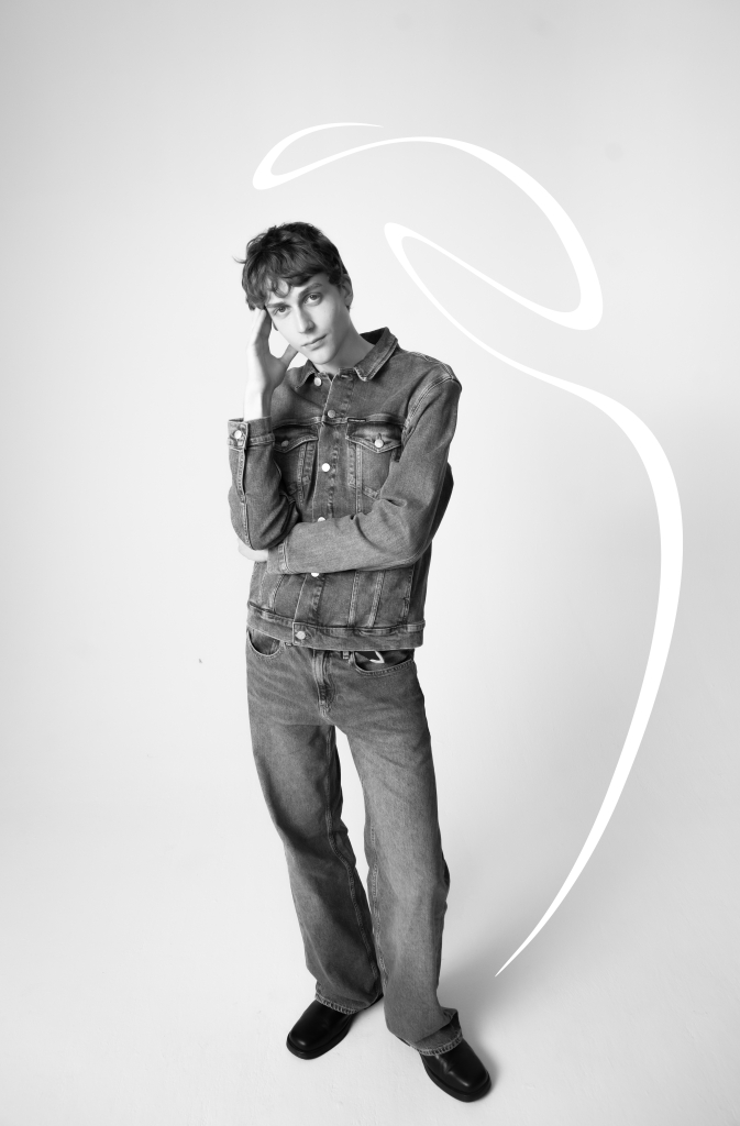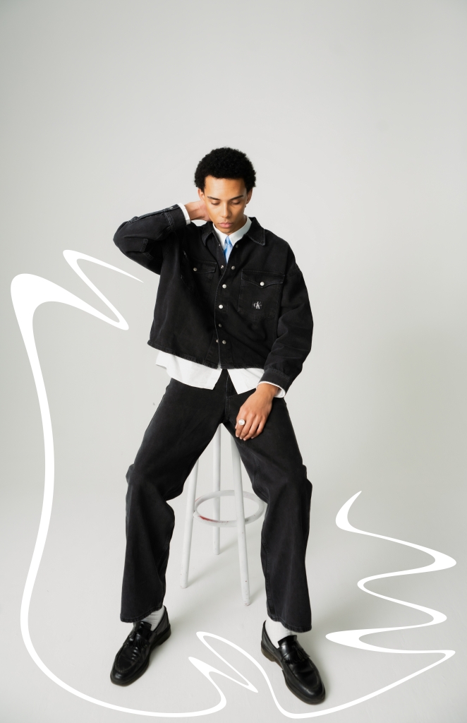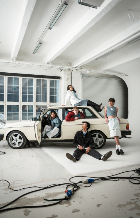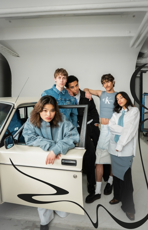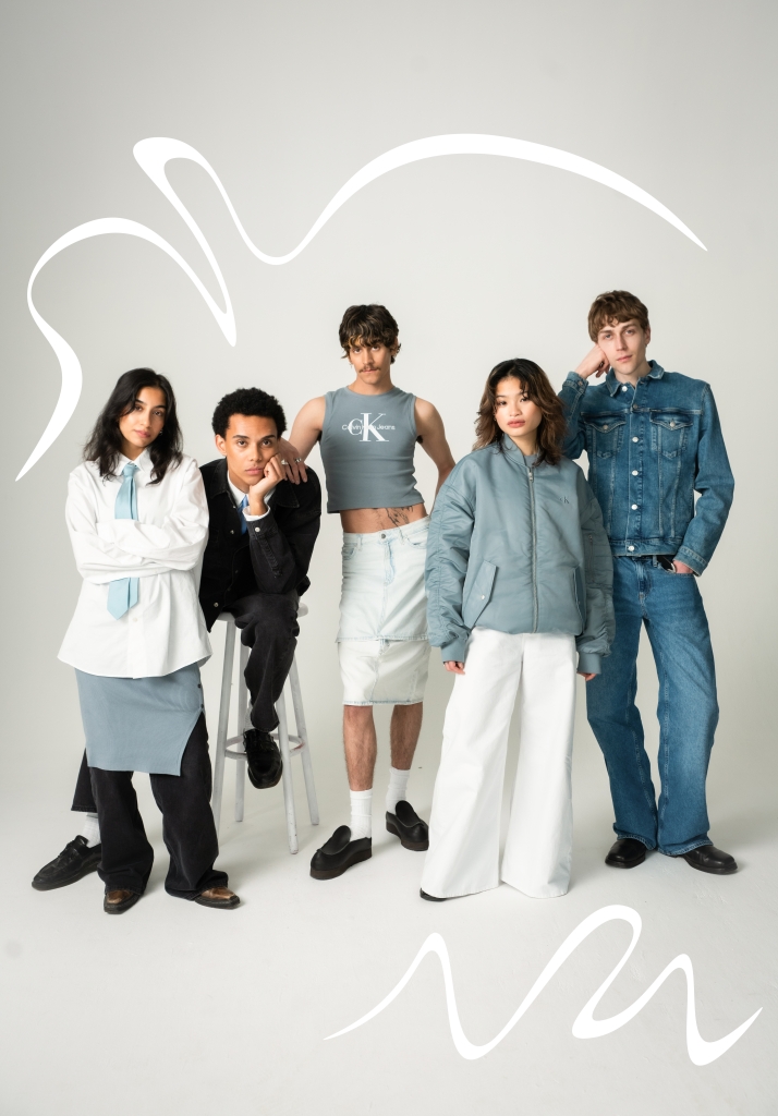 Axel: Bär en klassisk Canadian Tux bestående av CK 90’s Loose Fit Jeans, Denim Jacket matchat med en röd Relaxed Nylon Mesh Jacket. Megha: Matchar sina 90’s Loose Fit Jeans med en blå ribbad Pencil Skirt och vit skjorta. Samuel: Bär CK’s High Rise Mini Skirt och en Ribbad Tank Top. Anton: Relaxed Denim Shirt, tillsammans med en klassik vit skjorta, slips och 90’s Loose Fit Jeans. Alice: Matchar CKs Oversized Bomber Jacket, med en ribbad Monologo Tank Top och ett par Low Rise Coated Jeans.