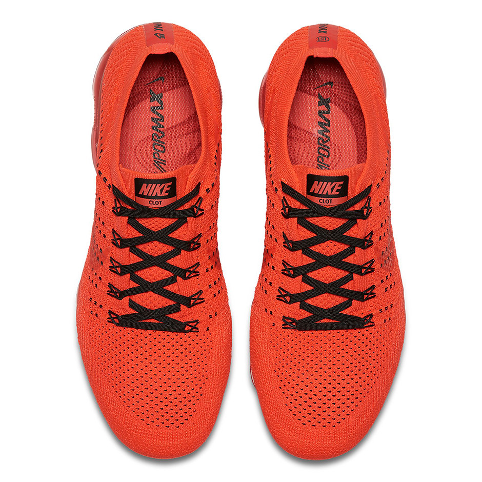 Nyligen visades CLOT grundaren Edison Chen ett smakprov på en re-make av Nikes VaporMax upp. Det som visades upp var tungan på en Vapormax med CLOT brandingen på vilket antydde att ett Nike x CLOT samarbete var på gång. Nu har SneakerNews visat upp officiella bilderna på samarbetet. Precis som väntat ser vi en röd Flyknit överdel med svarta detaljer och samma röda färg på Air Max-sulan. På Air Max-sulan finns texten ”dense clouds of smoke and toxic vapor.” printat. Än finns inget fastställt datum på skornas release, men Dopest håller er uppdaterade när ny information finns.