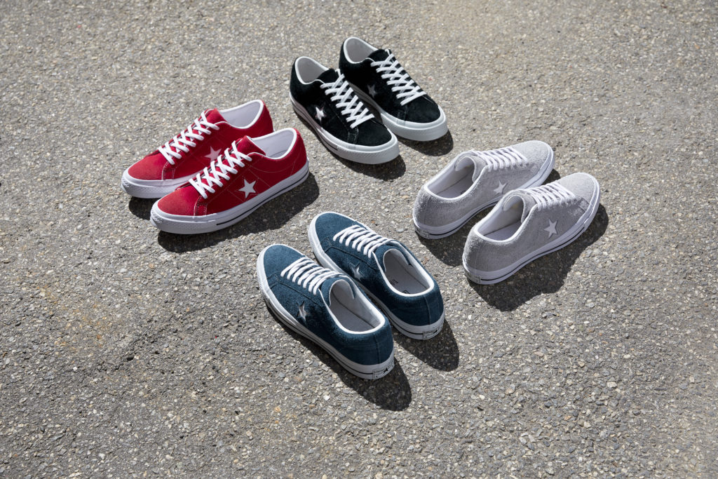 Converse One Star Premium Suede kommer vara tillgängliga i svart, marinblå, röd och grå, skorna kommer att säljas exklusivt i London på Dover Street Market under en vecka från och med 15 Juli samt Sneakersnstuff, Patta och W00dW00d från och med den 22 Juli.
