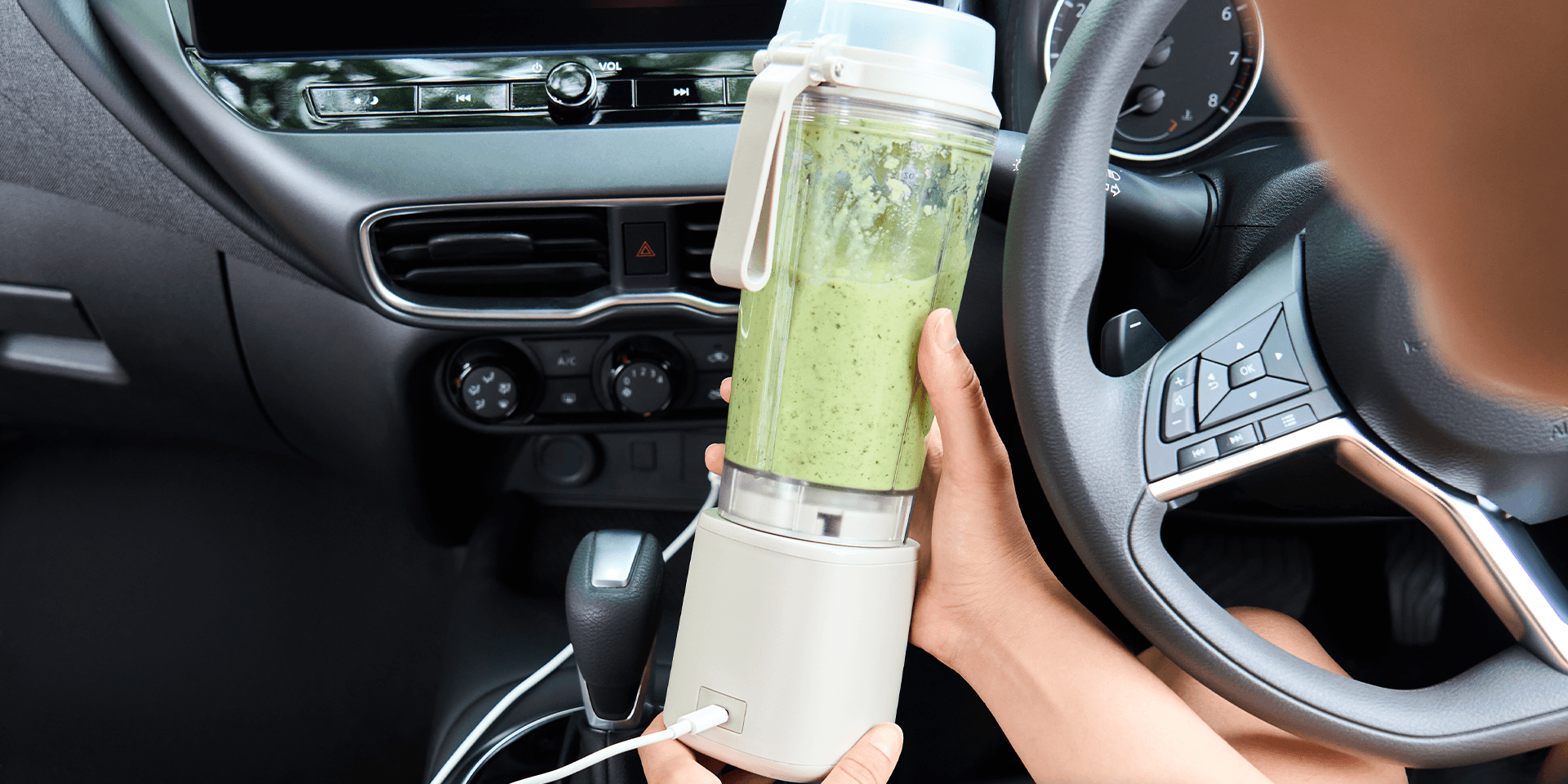 Med robusta knivar i rostfritt stål tar den sig an både is, fryst frukt och färska ingredienser utan problem. Batteriet räcker till upp till 20 mixningar per laddning och laddas smidigt via USB-C, från dator, powerbank eller bilen.