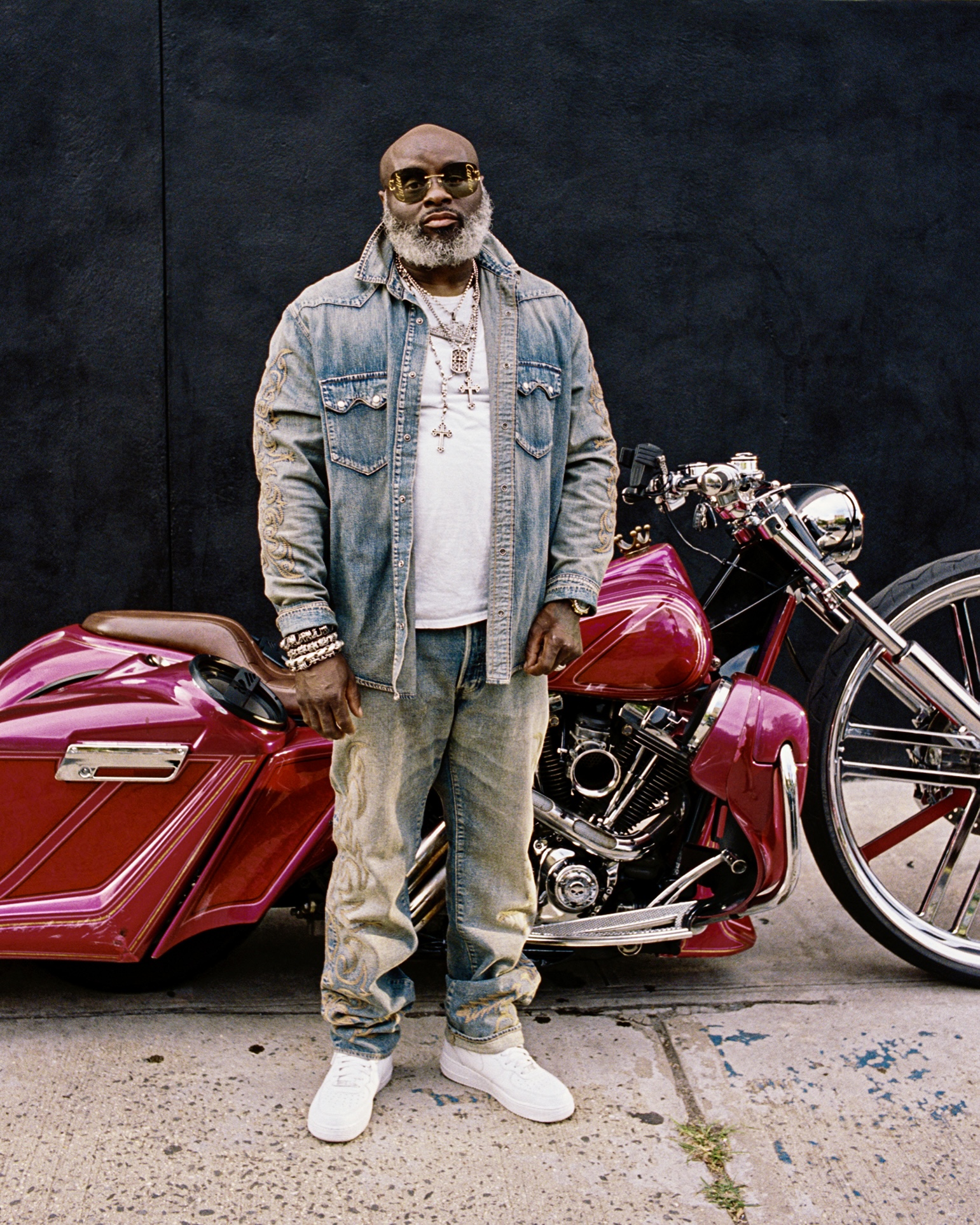 ”Jag har varit fascinerad av den svarta bikerkulturen så länge jag kan minnas. Det som vid första anblicken verkar vara enkla och funktionella kläder, har estetiska influenser från den amerikanska ursprungsbefolkningen, cowboys, rodeo, arbetskläder, militärkläder, laglösa och vagabonder”, säger Tremaine Emory.