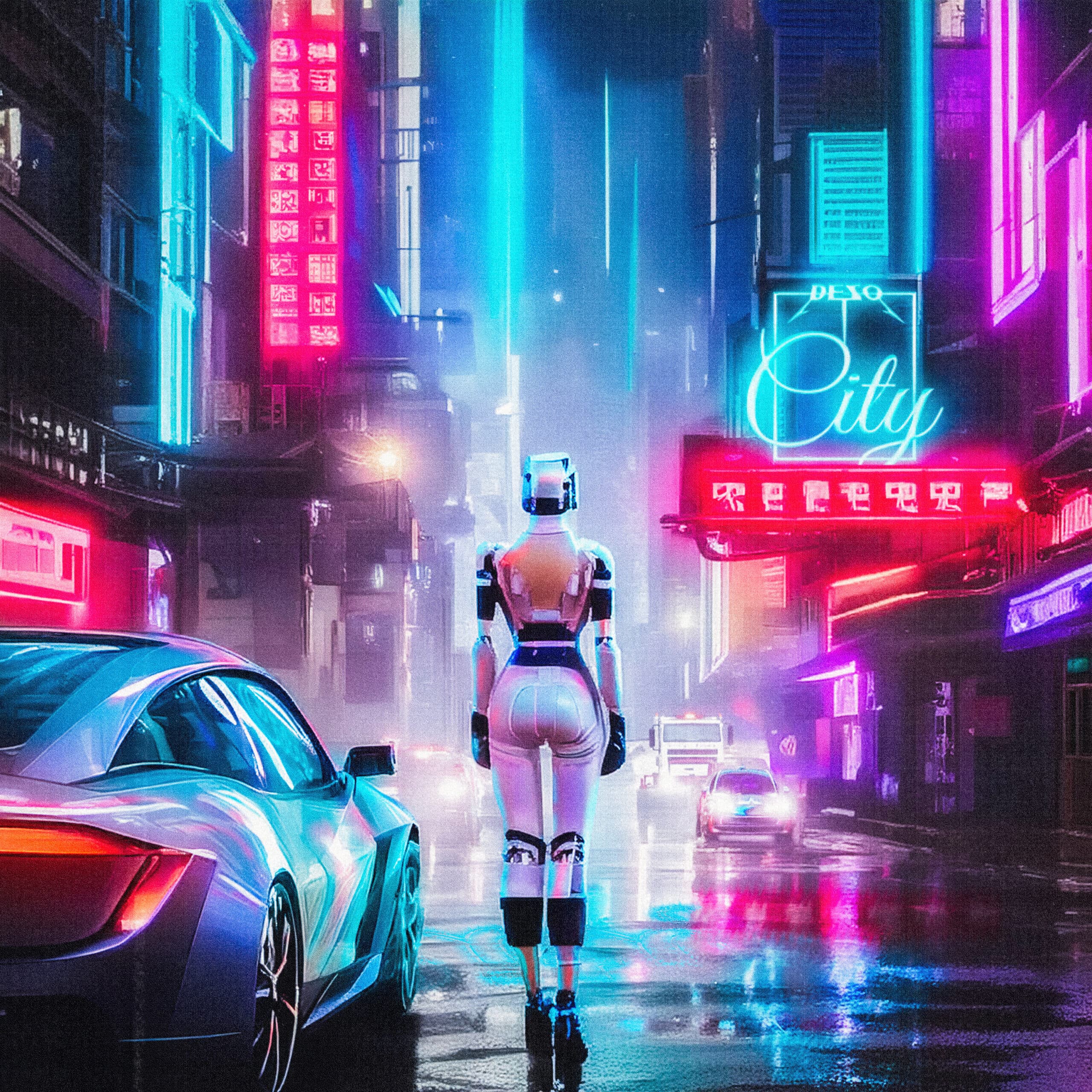 Nu har vi fått den elektroniskt tonade singeln, som är producerad av Tusen. Synthar och baslingor studsar och sveper över ljudlandskapet som visualiseras perfekt i singelns omslagsbild, en robot som rör sig genom gator upplysta av rosa, blå och lila neonskyltar.