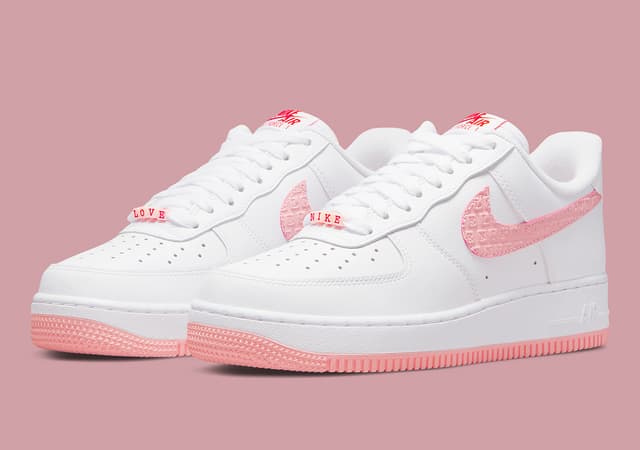 Att Nike årligen släpper en romantisk “Valentine’s Day” siluett av deras ikoniska Nike Air Force 1 Low börjar bli något av en tradition. Under förra årets högtid släpptes utöver en AF1, även en vit och rosa womens Nike Dunk Low. Historien verkar upprepa sig i år, för nu har företaget avslöjat färgställningen på de kommande släppen. Air Force 1 får färgerna vitt, rosa och inslag av rött, där den klassiska Nike “Swooshen” är färgad rosa och har orden “Love” och “Nike” ingraverade på varsin sida. Nike Dunk Low-modellen kommer återigen i damstorlekar och består av starka rosa och röda färger, med inslag av twill, tumbled läder och mocka i materialet.