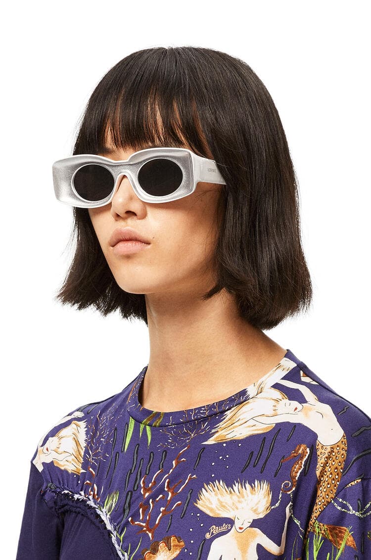 De här solglasögonen från modehuset Loewes Paula’s Ibiza kollektion är ett perfekt tillägg till dig som vill ha ett par unika solglasögon i din garderob. Glasögonen, som varit en stor trend under 2020, utgörs av en oval lins som tillsammans med en oversized, rektangulär ram skapar en mycket unik och intressant form. Loewe Paula’s Ibiza solglasögon kommer i fem olika färger.