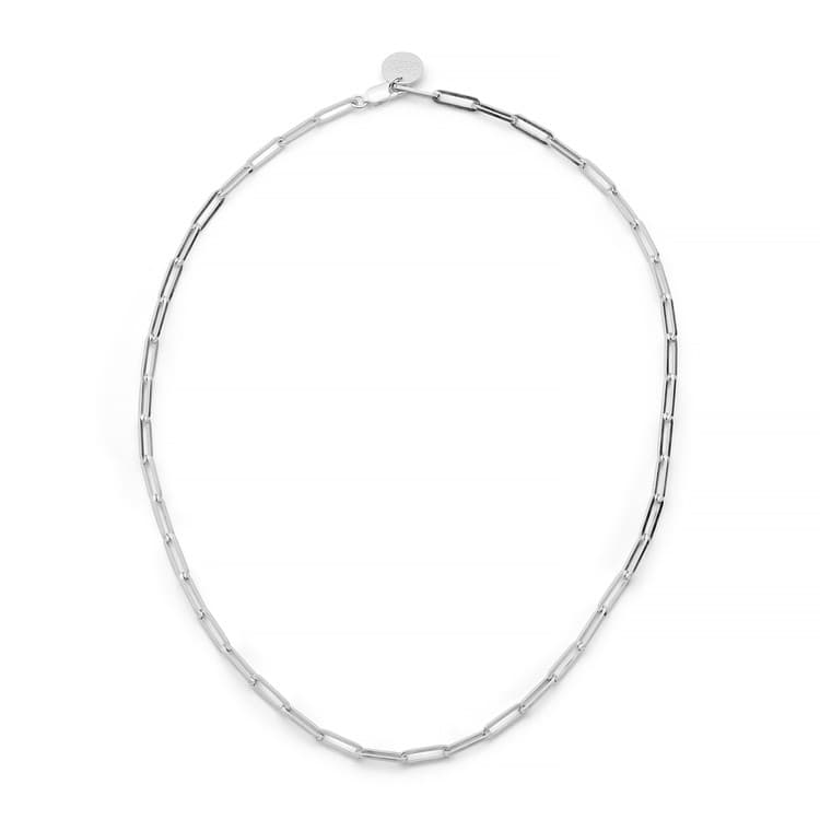 Det här halsbandet, designat och tillverkat av den svenska smyckesdesignern Saga Melina, är ett perfekt tillägg för dig som vill piffa upp din smyckeskollektion. Chain Reaction, som halsbandet heter, är en del av Saga Melinas Chain Reaction-kollektion och har en typiskt ‘Saga Melina-minimalism’. Halsbandet kompletteras med kedjeliknande detaljer som ger halsbandet ett ytterligare djup, vilket gör det mycket spännande att bära.