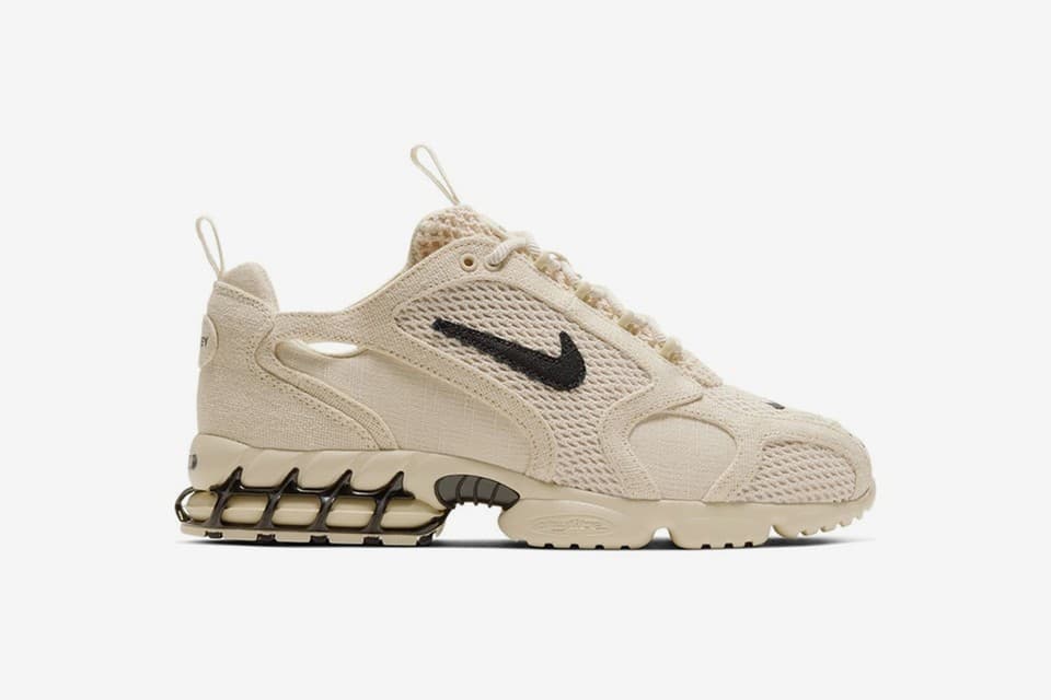 Nike Air Spiridon Cage 2 släpptes för första gången år 2003. I april släppte Stüssy ett samarbete med Nike – som bestod av bland annat byxor, vindjackor och två par sneakers. Deras take på den klassiska modellen Spiridon Cage visar stilrena kontraster mellan den futuristiska silhuetten och färgställningen “Fossil”s beigea old school-drag. Genom att välja en ovanlig modell och göra om den på deras sätt, fortsätter Stüssy imponera på oss alla i år.