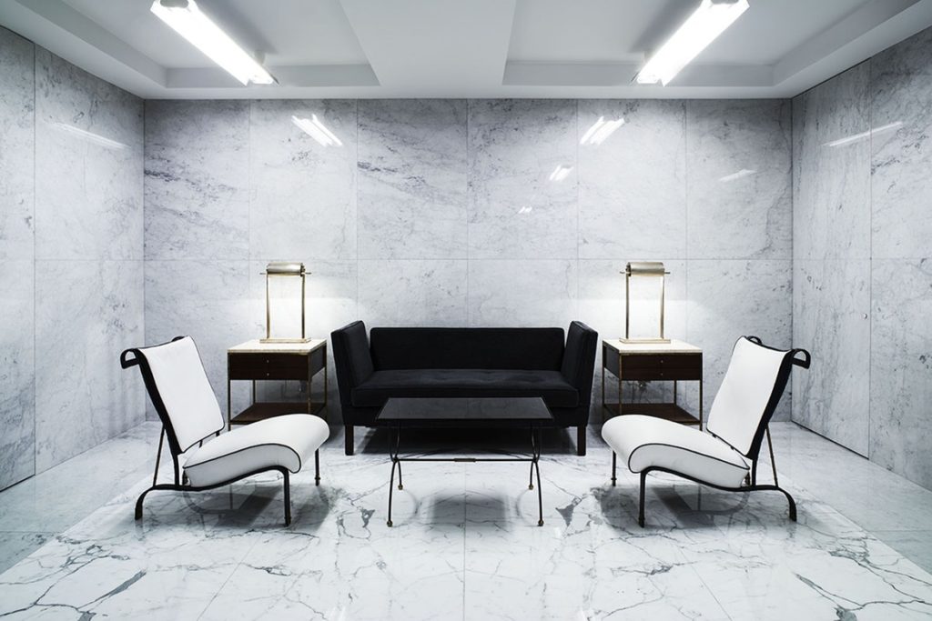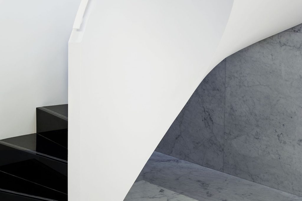 Butik ligger på lyxiga Mayfair-distriktet och har designats i samarbete med Thom Brownes trogne arkitekt Flavio Albanese. Designen är minimalistisk, med massa marmor och antika möbler. Se bilder i bildgalleriet ovan.