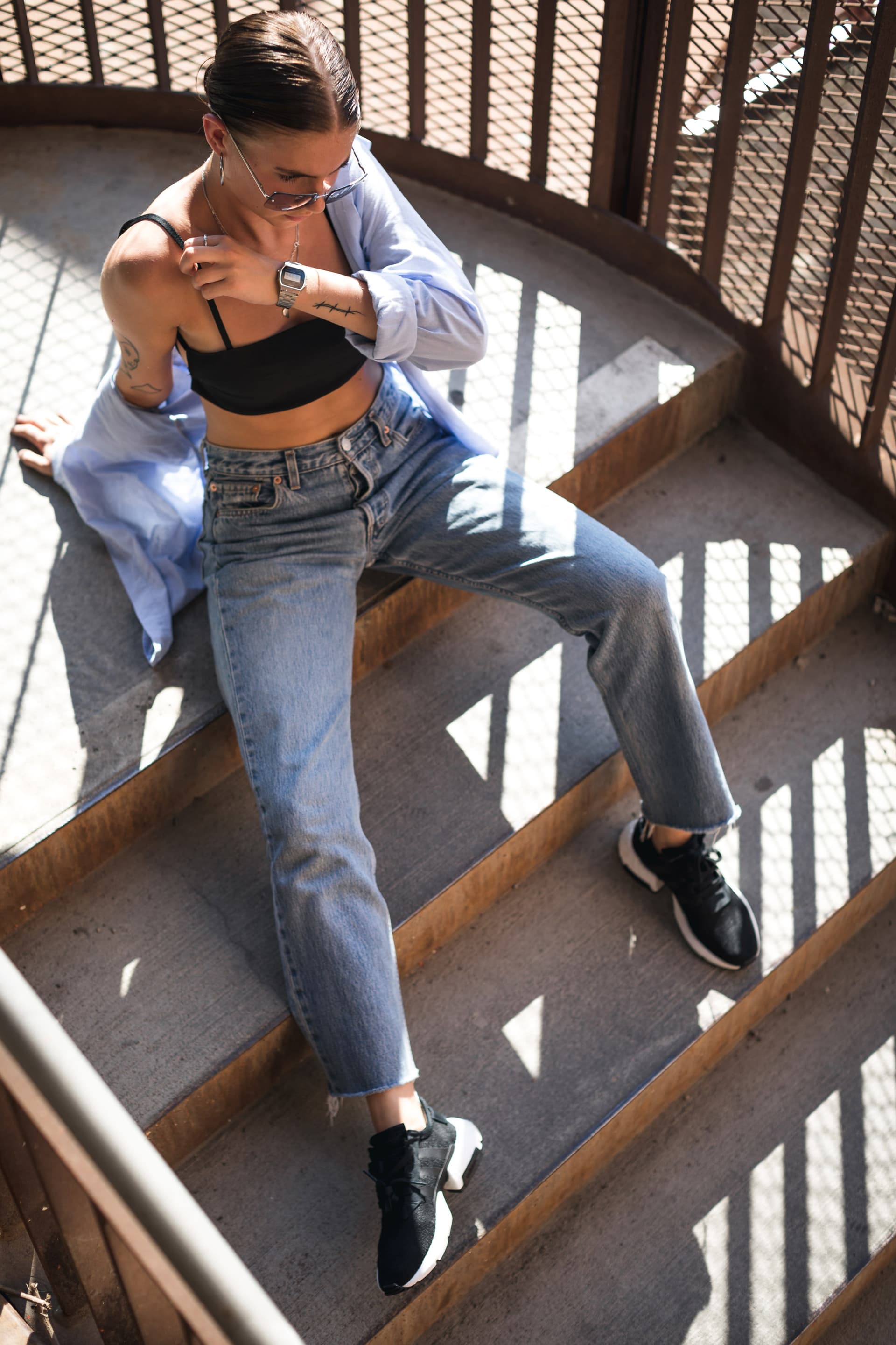 Vad har du på dig (ovan bild): Egen designat linne, Levi’s jeans, adidas P.O.D sneakers