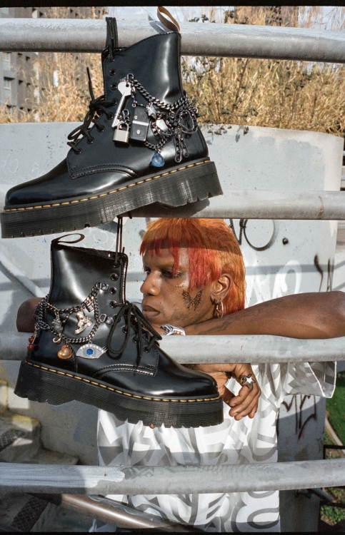Deras senaste collab-kollektion tar inspiration från Jadon-kängan, en modell som producerades av Dr Martens första gången 2013. Jadon-kängan är byggd med en plattformssula med den typiskt robusta designen. De klassiska Dr. Martens signaturdetaljerna är också där, bland annat de gula sömmarna och en vegansk hälla på hälen.