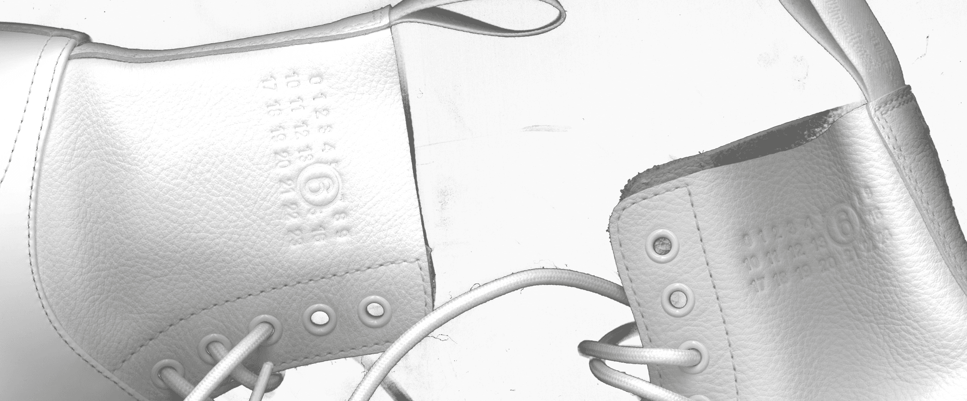 Samarbetet fokuserar på två hybridmodeller, 1460/1461 och 1461/Penton. Båda levereras i en helvit look som flörtar med MM6:s signaturstil och färgstänkta boots från deras SS25-visning. Den kritvita färgsättningen är inte bara estetisk, den utmanar också hur vi ser på klassiska Dr. Martens-skor.