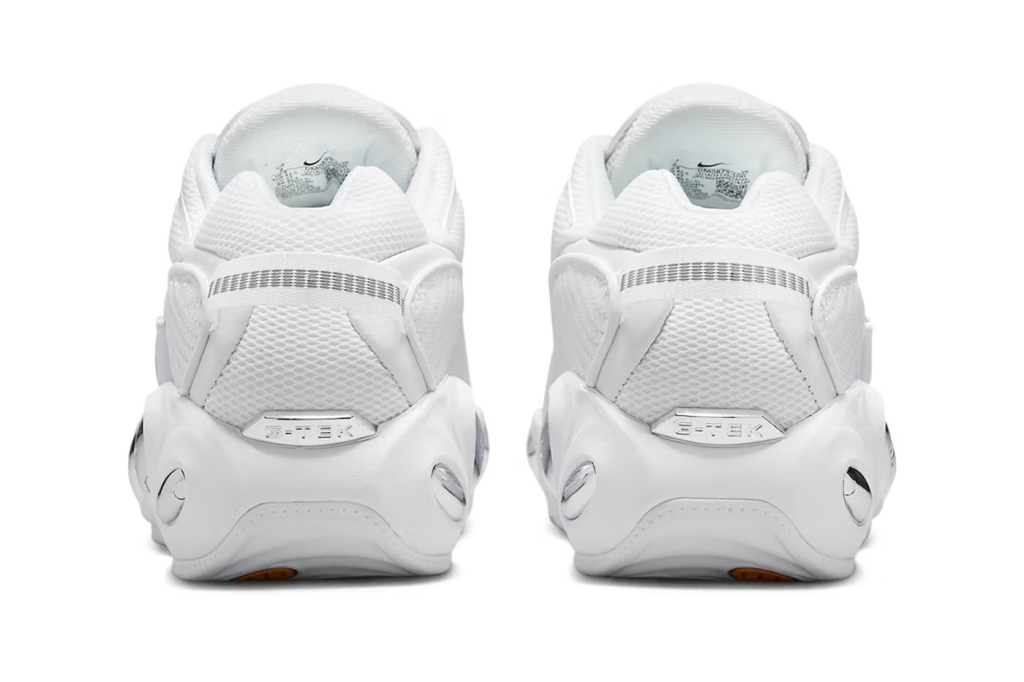Modellen är inspirerad av klassikern Nike Zoom Flight 95 och har en ventilerande mesh- och vävvandel i en clean vit färg. Kromade silverdetaljer pryder mellansulan och hälen, samtidigt som en remsa med reflex löper runt skon för en lysande look i höstmörkret. NOCTA- och G-TEK-logotyper hittas vid mellansulan och hälen, med ytterligare loggor på tungan, innersulan och runt swooshen. Skon avslutas med en vit- och guldfärgad yttersula.