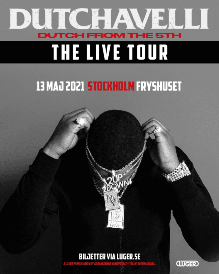 Nu står det klart att han kommer till Sverige för en spelning på Fryshuset i Stockholm den 13 maj. Biljetterna släpps tisdag 24 november klockan 09.00 via luger.se/dutchavelli. Lyssna på Dutch from the 5th.