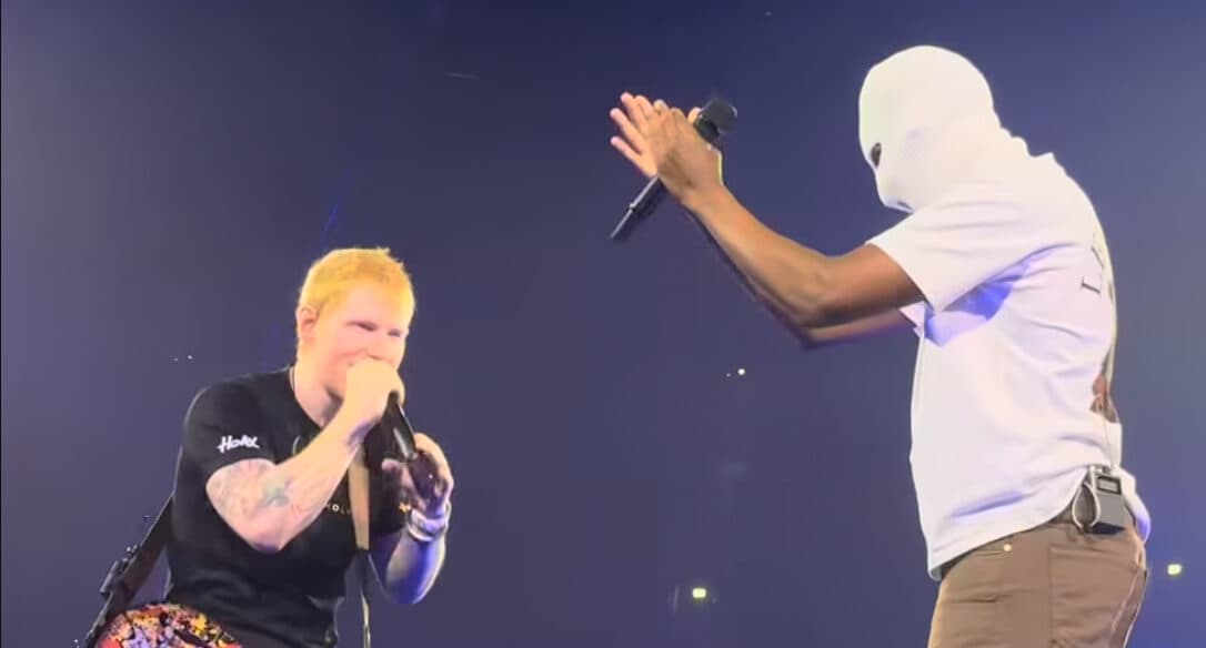 På lördagskvällen tog samarbetet nästa steg. Under sitt framträdande bjöd artisten upp 1.Cuz på scen, men den här gången valde han att sjunga på svenska. När 1.Cuz körde sin låt ”FÖRSENT”, stämde Sheeran in och sjöng delar av refrängen på svenska.