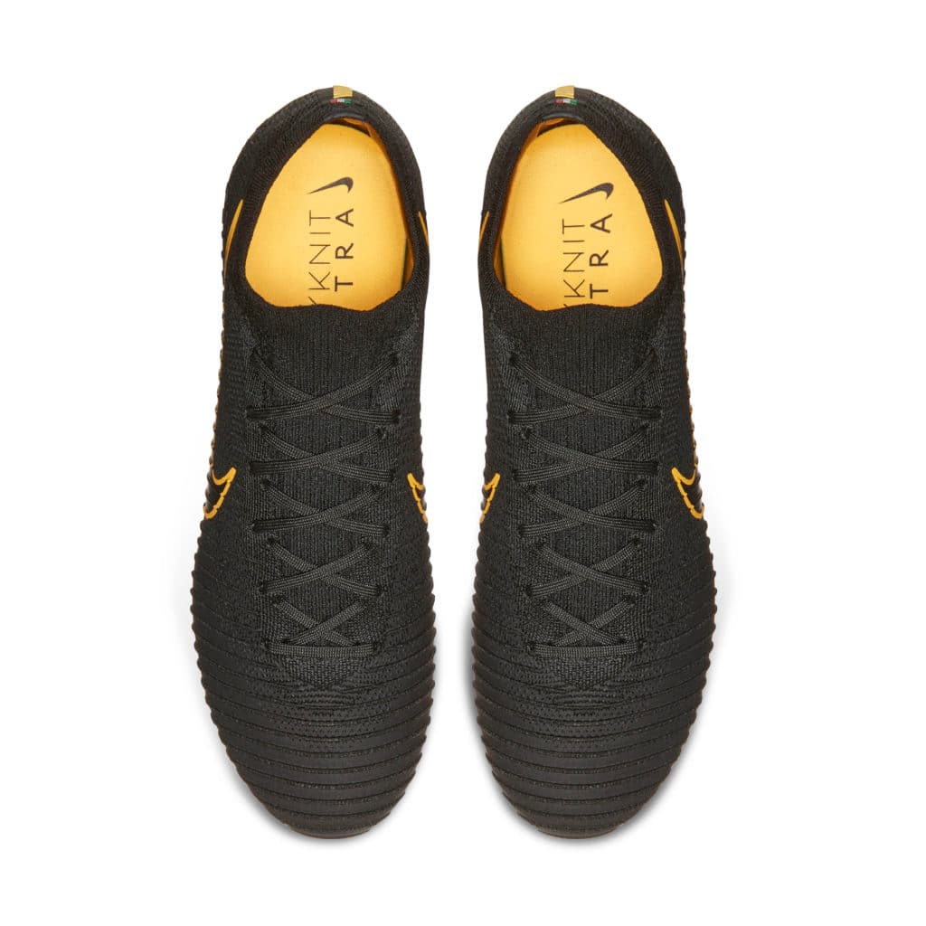 Skorna kommer i en ovandel helt i Flyknit. Det kommer finnas 2 500 par av de limiterade Nike Mercurial Ultra Flyknit Vapor i ”Tripple-black”, och 1 500 par i ”Black/Metallic/Gold” vilka säljs på Nike.com och hos utvalda återförsäljare.