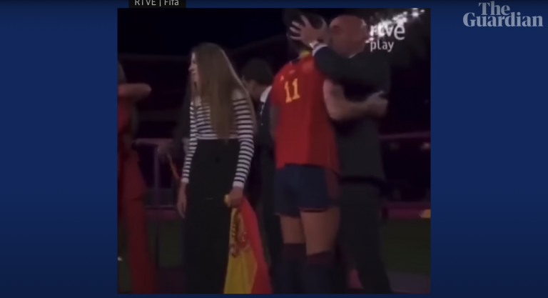 Under Spaniens VM-guldfirande efter finalen mot England hamnade spanska fotbollsförbundets president Luis Rubiales i blåsväder, då han forcerat kysste anfallaren Jennifer Hermoso på munnen.
