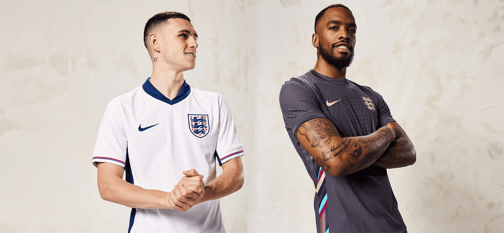 Hemmatröjan har enligt Nike skapats för att hylla laget som vann VM 1966, men både den och bortastället har hamnat i blåsävder. Tröjan innehåller nämligen en ändring av Englands St George-flagga, som har ändrats från den vanliga röda och vita färgen till att visas som ett rött, lila, svart och lila kors. Det är dock oklart om det kommer att vara med i turneringen, då det endast synts i nacken under en försäsongsmatch.