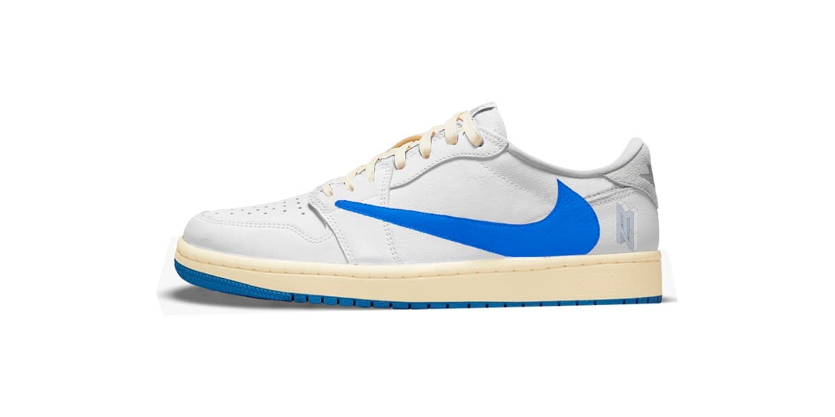 Om den nya versionen av Travis Scott x Air Jordan 1 Low bara är en sample, eller faktiskt kommer släppas är ännu inte bekräftat. Den här varianten går övervägande i vitt. På yttersidan syns en omvänd Swoosh i blått, samt en i vitt på insidan.