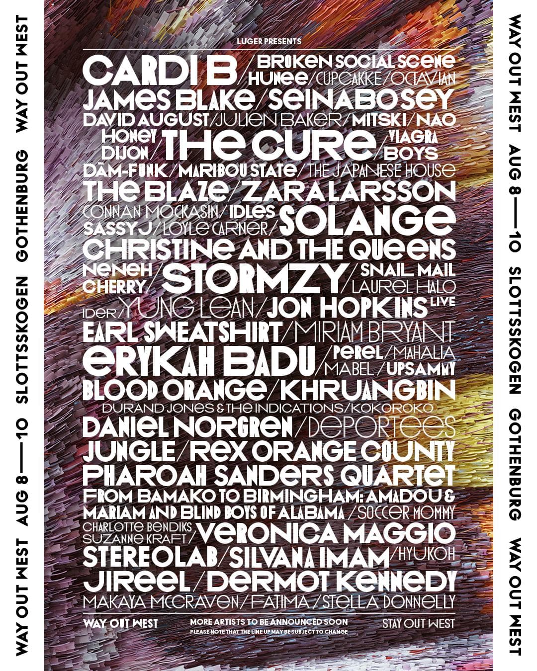 Nedan ser ni en lista över alla klara artister för Way Out West 2019: