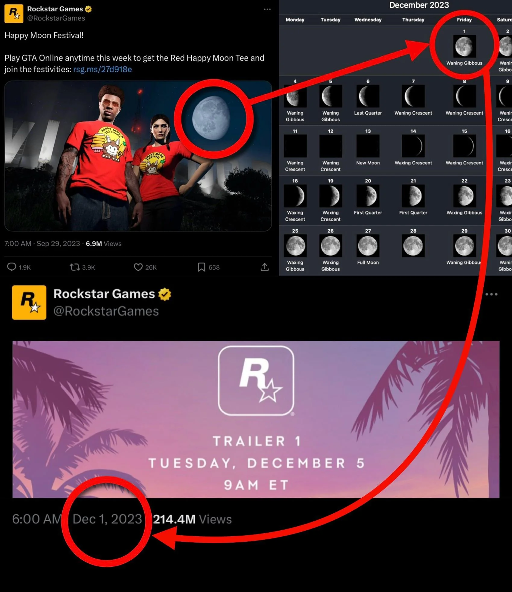 Enligt användaren släpptes en bild med en liknande måne i november 2023 med en fas som matchade med releasen av den första GTA 6-trailern, som kom i december 2023. Enligt användarens uträkning bör alltså en ny trailer, eller något annat avslöjande, dyka upp den 22 november 2024.