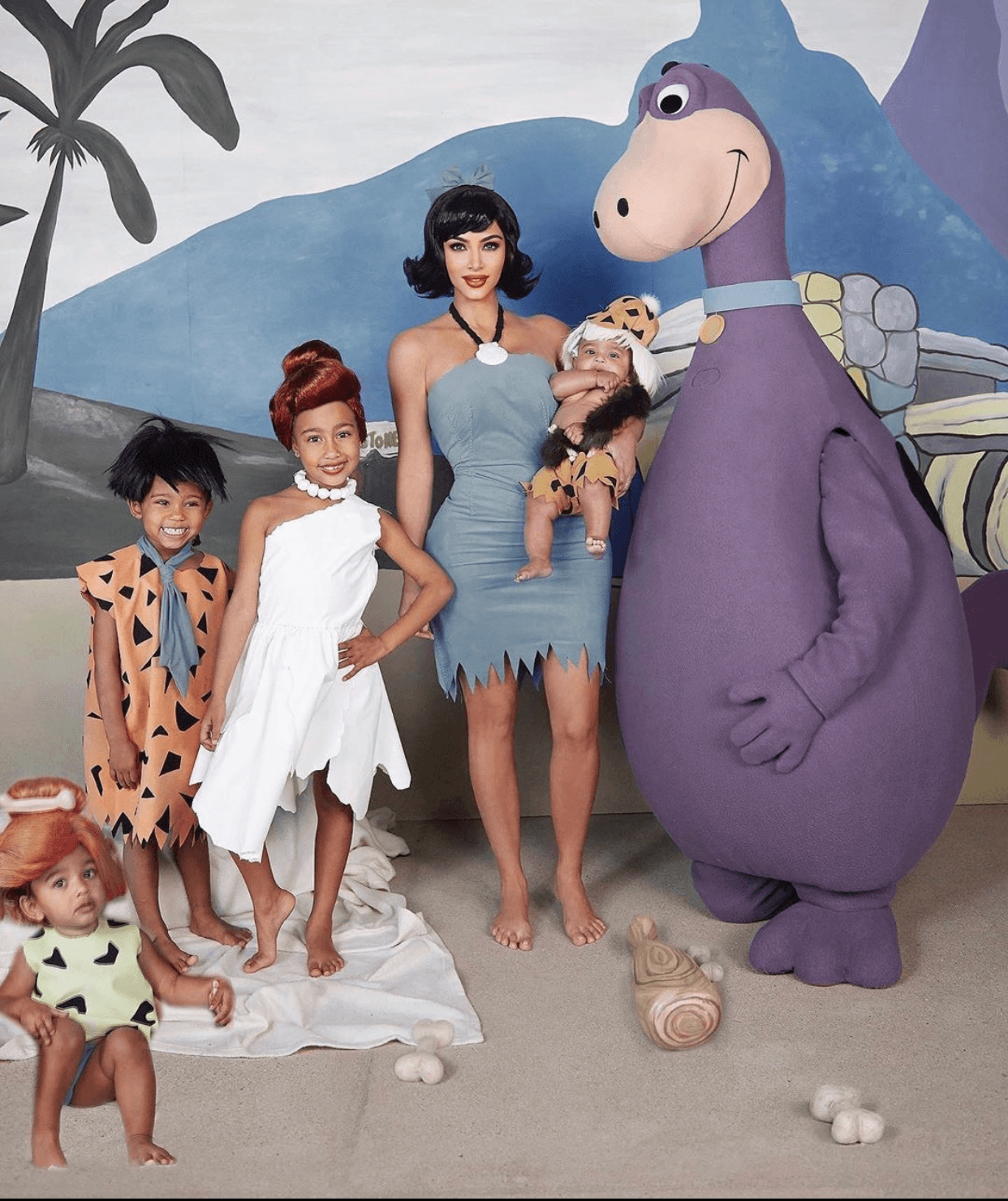 Med tanke på ovanstående tweet blev Kanye ”Ye” Wests val att klä ut sig till dinosaurien Dino (heltäckande dräkt) år 2019 extra rolig. När hela familjen, inklusive dåvarande frun Kim Kardashian, klädde ut sig till Familjen Flintstone kändes det självklart att Ye skulle vara pappan Fred. I typisk Ye-stil gick han dock emot alla förväntningar när han istället klädde ut sig till familjens husdjur: En lila dinosaurie.