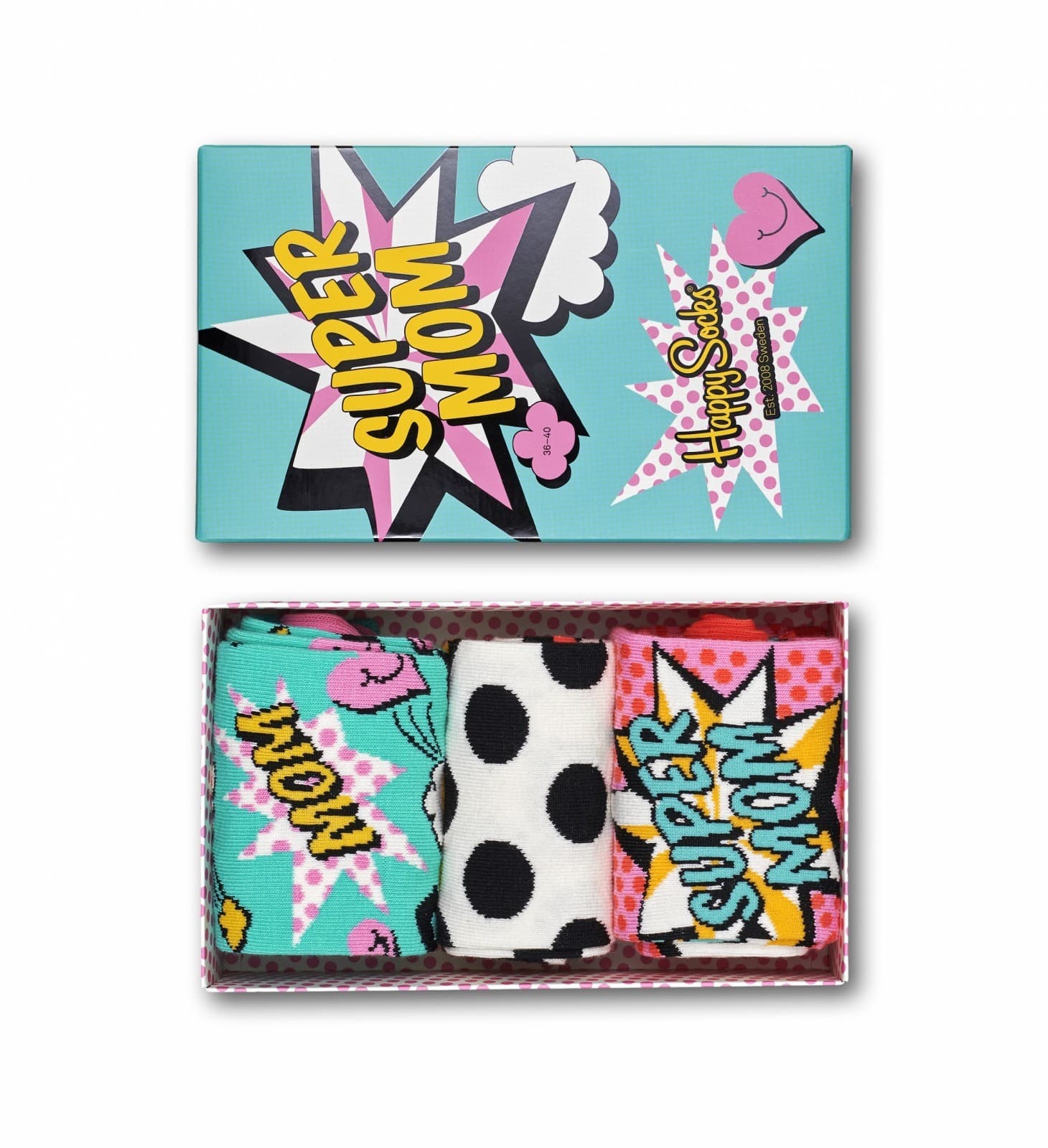 Kollektionen tar inspiration från pop-art och serietidningar och vi ser texter som ”SUPER MOM” och ”MOM” tryckt i explosiv text. Detta tillsammans med en design i starka färger såsom gul röd, rosa och turkos. Med kollektionen vill Happy Socks påminna alla mammor om vilka hjältar de faktiskt är, på ett sätt som ger deras outfit något extra.