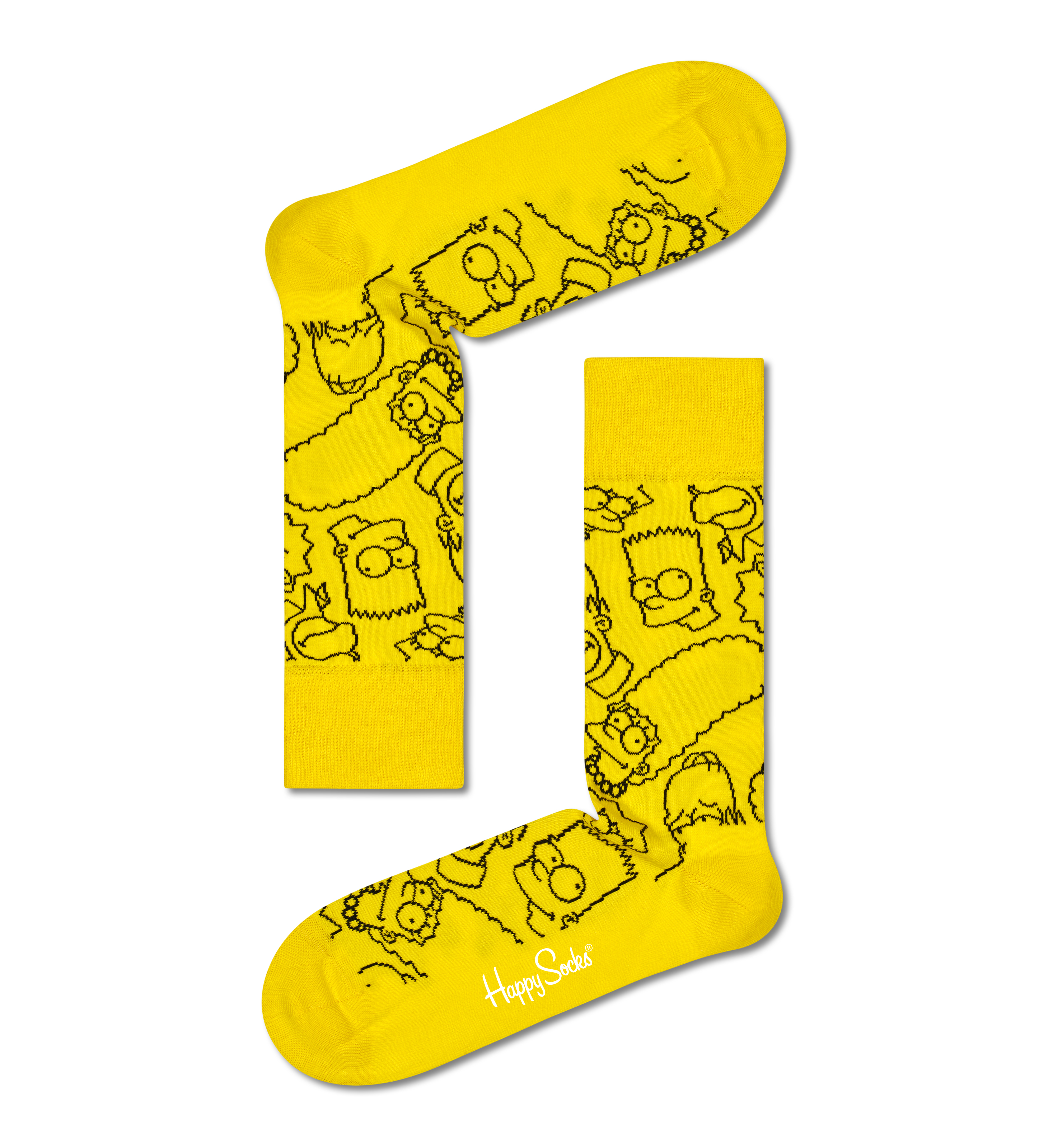 I samarbete med Simpsonsskaparna själva har svenska strumpmakarna Happy Socks tagit fram 8 nya designs för vuxna som även finns i två olika giftboxes för den som vill sätta lite mer färg på någon annans fötter. För den som vill stila till sina eller någon annans barn finns även 5 nya designs för de små, samt en 3-packs giftbox.