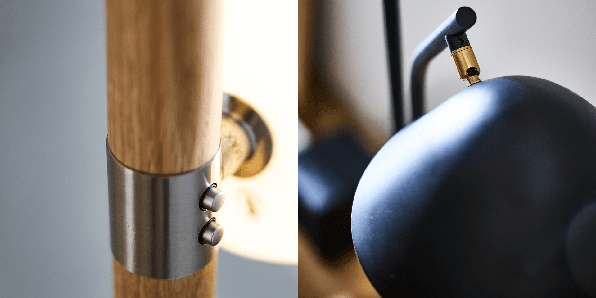 Båda lamporna har en smart dubbelfunktion: de ger både ett mjukt, uppåtriktat stämningsljus och ett riktat ljus för läsning eller arbete.