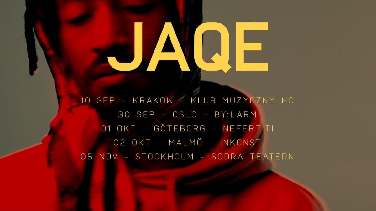I höst åker Jaqe på höstturné med start i Krakow, Polen den 10 september. Sedan fortsätter resan vidare till by:larm i Oslo, Göteborg, Malmö och avslutas i Stockholm, Södra Teatern den 5 november.
