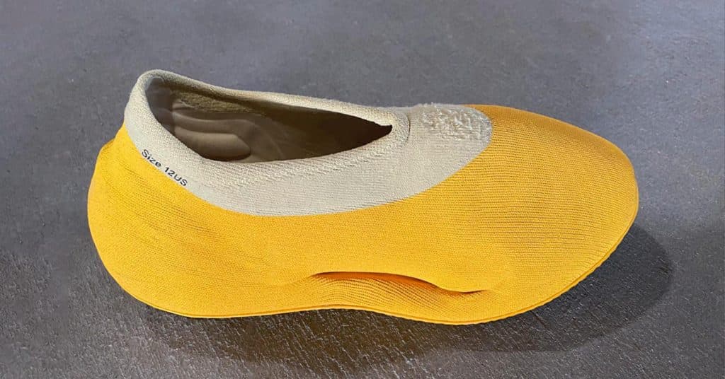 Kanye West har gjort sig känd för att introducera en rad spännande silhuetter – nu får vi se ännu en ny modell som fått namnet YEEZY KNIT RNR ”Case Power Yellow”. Skon har tidigare ryktats ha namnet ”Turreliens” och ”TRRL RNR” och i form påminner den faktiskt om en FOAM RNNR. Istället för EVA-foam kommer skon dock med en ovandel i stickat material, därav namnet KNIT RNR.