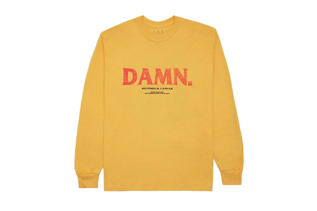 Kendrick Lamar gick tidigare i veckan ut och annonserade sin ’DAMN. Tour’ turné tillsammans med Travis Scott och D.R.A.M. Nu adderar han även ny merch tills sin redan befintliga kollektion som släpptes i samband med album releasen. Den här gången hittar du en Kung-Fu Kenny svart långärmad T-shirt som kompletteras med en annan långärmad tröja i guld som kommer med en speciell DAMN. grafik. Det tredje plagget blir en svart hoodie med samma grafik som den guldfärgade
