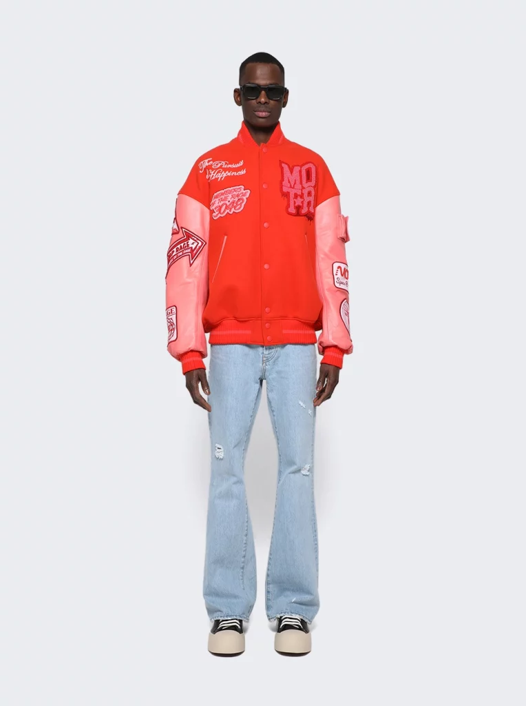 Den första kollektionen har fått en smygstart på Selfridges i New York, men finns nu även att förbeställa på flera online-återförsäljare som The Webster. Där kan vi se hela utbudet vars största utropstecken är en körsbärsröd varsity-jacka, med fastsydda patch-motiv med loggan för MOTR och annan text. Dessa går dock för 2 290$ (!) vilket är ungefär 24 000kr. Ett minst sagt saftigt pris för ett nykomlingsmärke, som bland annat även säljer långärmade t-shirts för 290$ (ungefär 2 900kr).