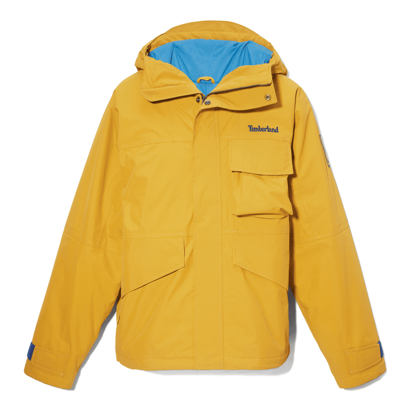 Sist men inte minst syns en gul jacka anpassad för utmanande väder. I produktionen introducerar Timberland ThermaRange™ ekoisolering – ett helt återvunnet, superlätt material som anpassar sin prestanda till utomhustemperaturen. ThermaRange™ ekoisolering håller dig varmare när det är kallt och svalare när det är varmt och är gjord ansvarsfullt med 100 % återvunnen nylon samt med DryVent™-teknik för andningsbart vattentätt skydd.